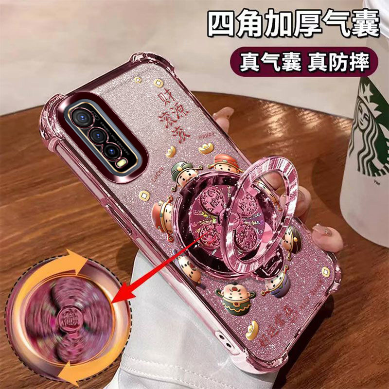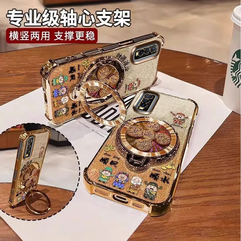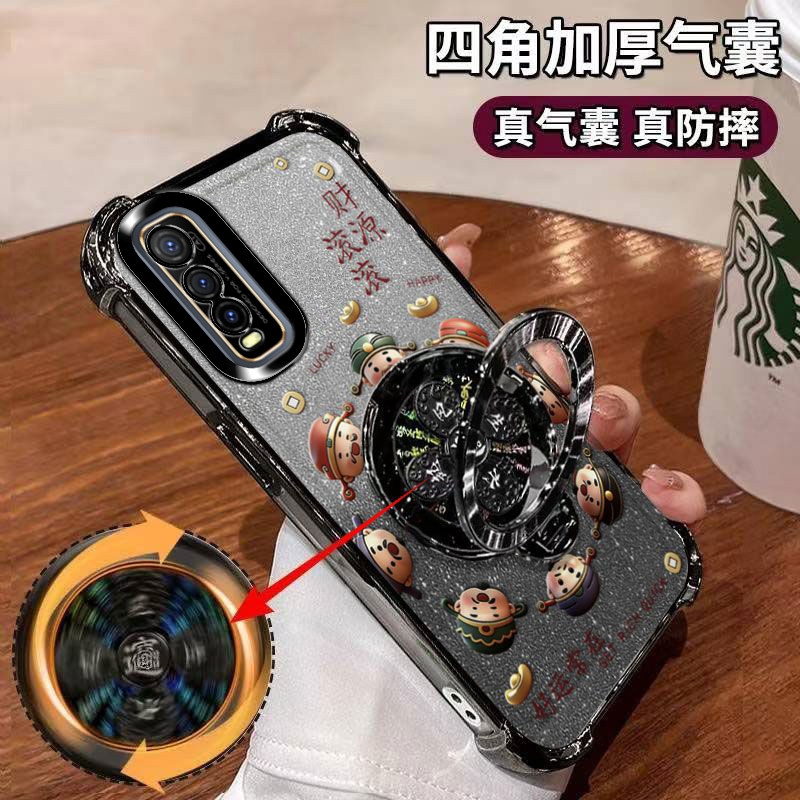 📚 适用vivoY70S手机壳财源滚滚V2002A维沃vivo好运常在软胶viv0全包防摔四角气囊5G陀螺支架ins闪金财神国潮viv