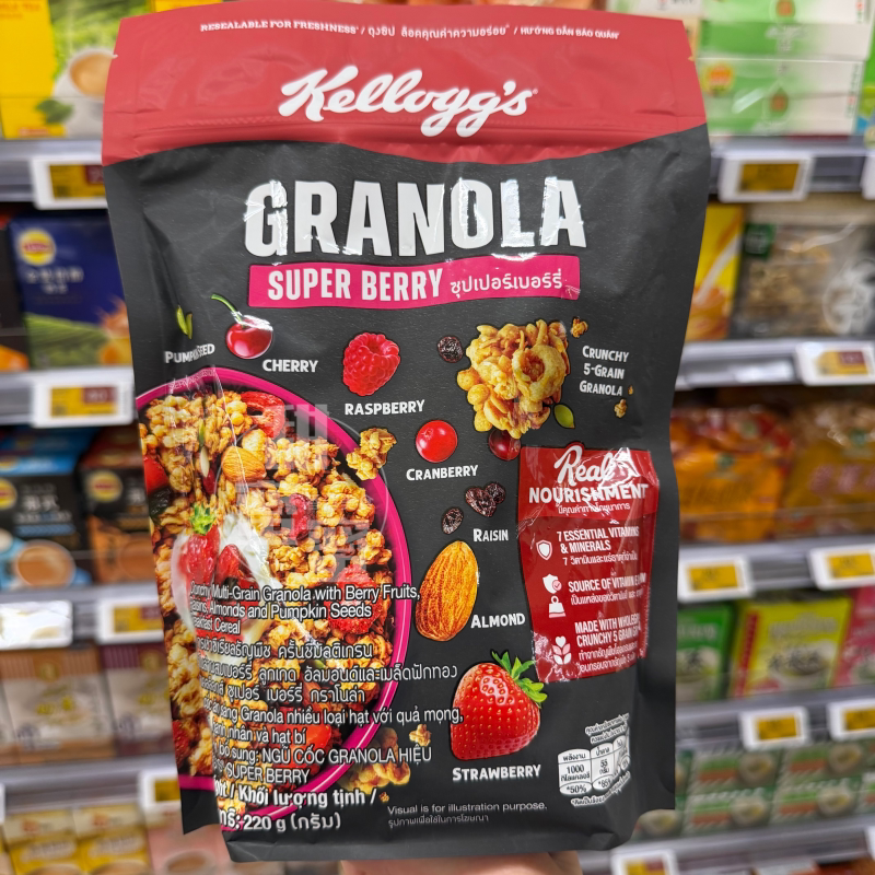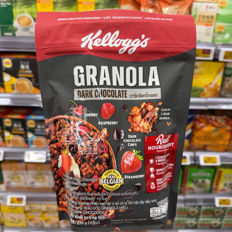 📚 香港代购 Kellogg's家乐氏 纤谷脆黑巧克力杂莓营养麦片袋装220g