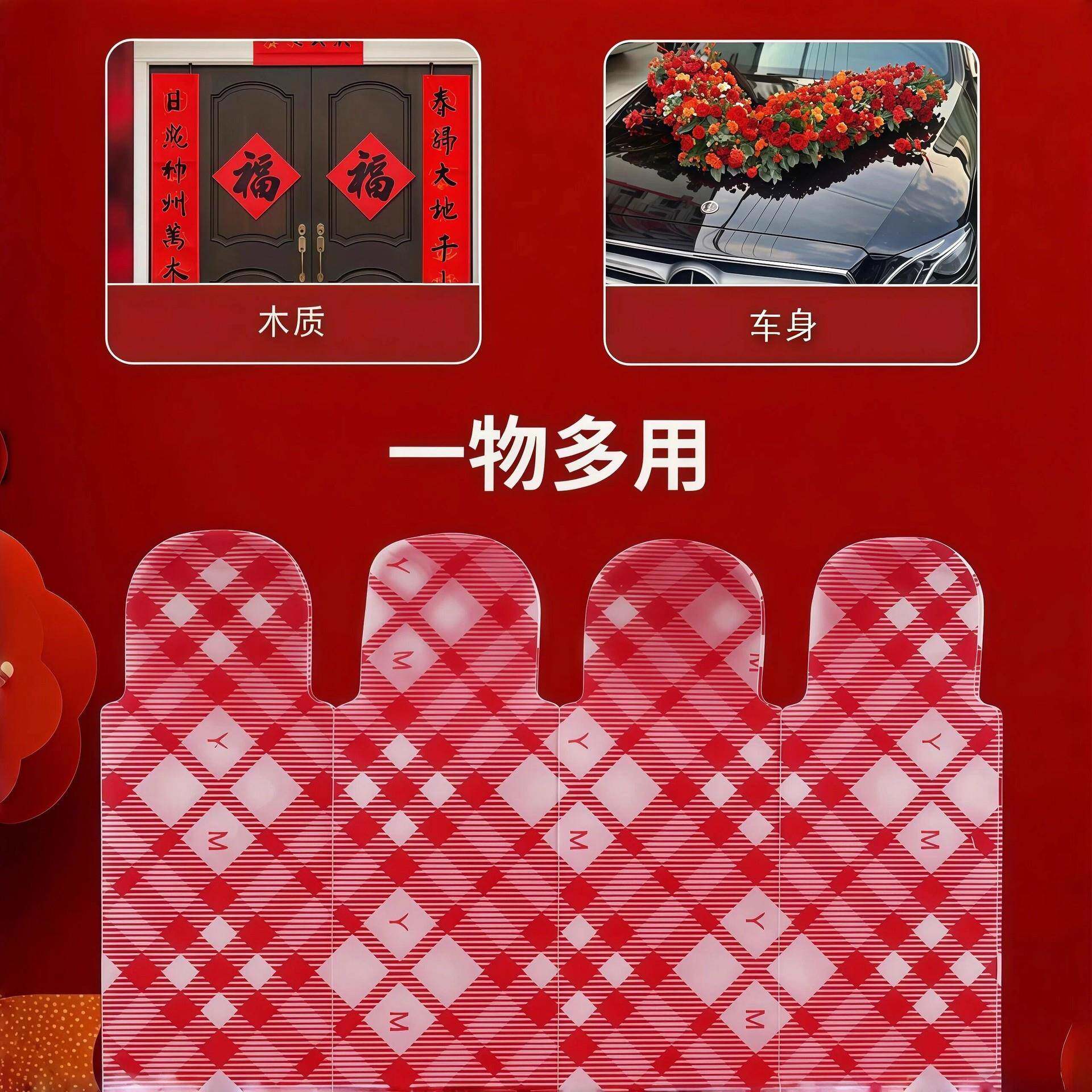 📚 马年网格春联胶带家用32片袋装对联婚庆装饰专用免打孔春联贴sv9