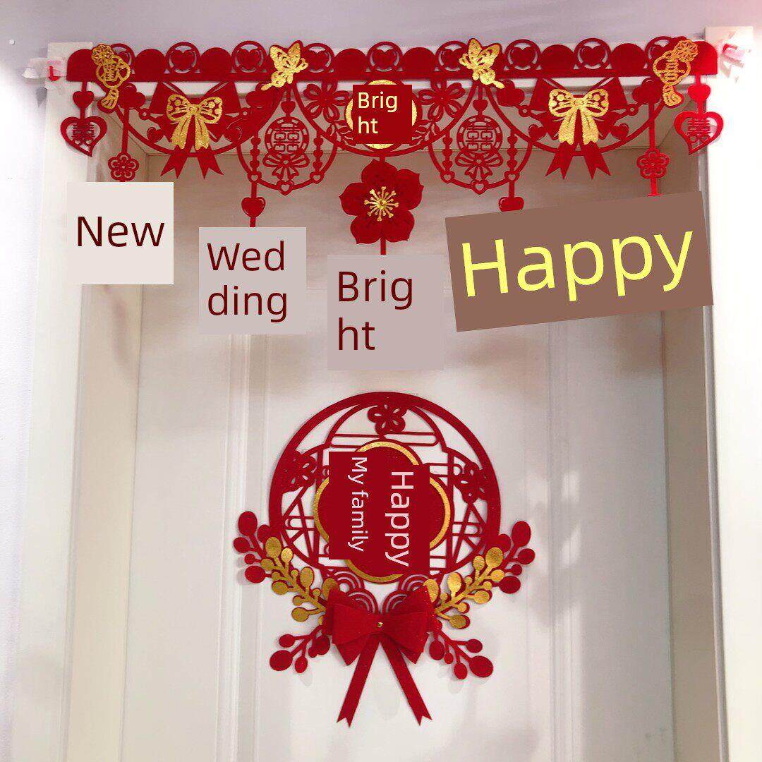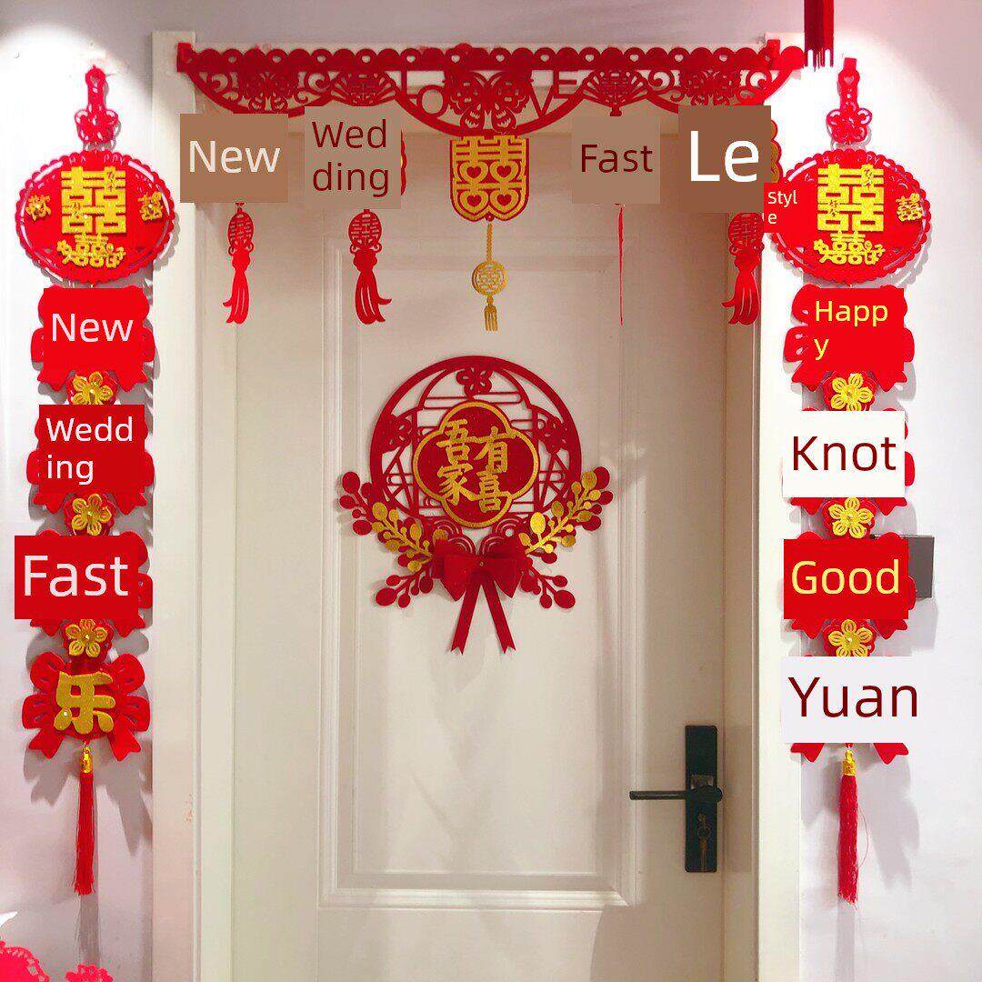 📚 植绒布结婚对联男方女方婚房门装饰喜联女方出嫁房门口婚房婚礼