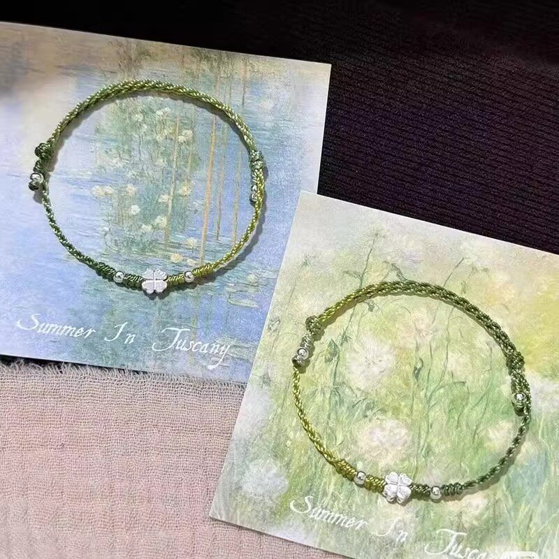 📚 绿意盎然四叶草手工编织小众独特精致幸运星轻奢百搭可调节手链