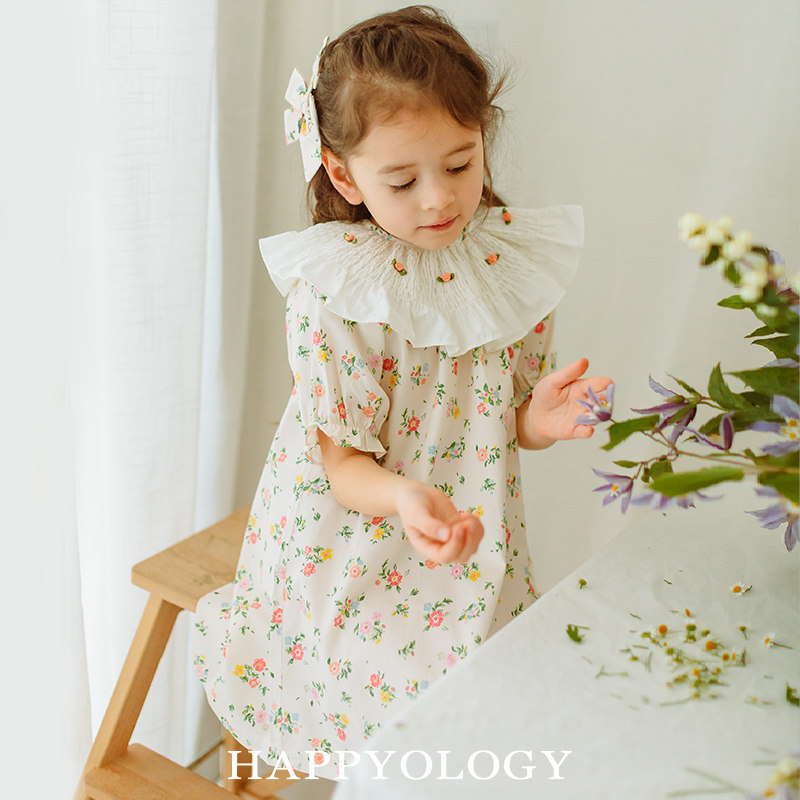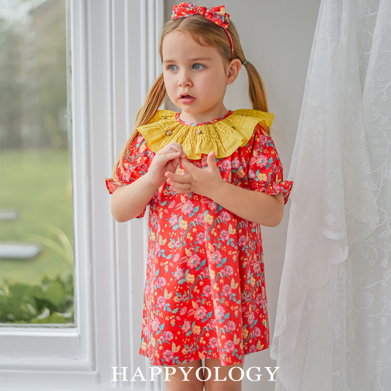 📚 Happyology英国女童连衣裙有机棉英伦印花司马克绣花领裙子夏新款