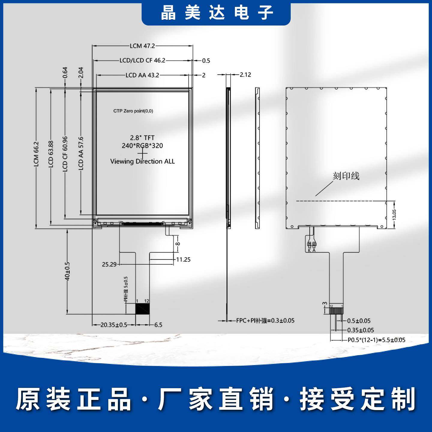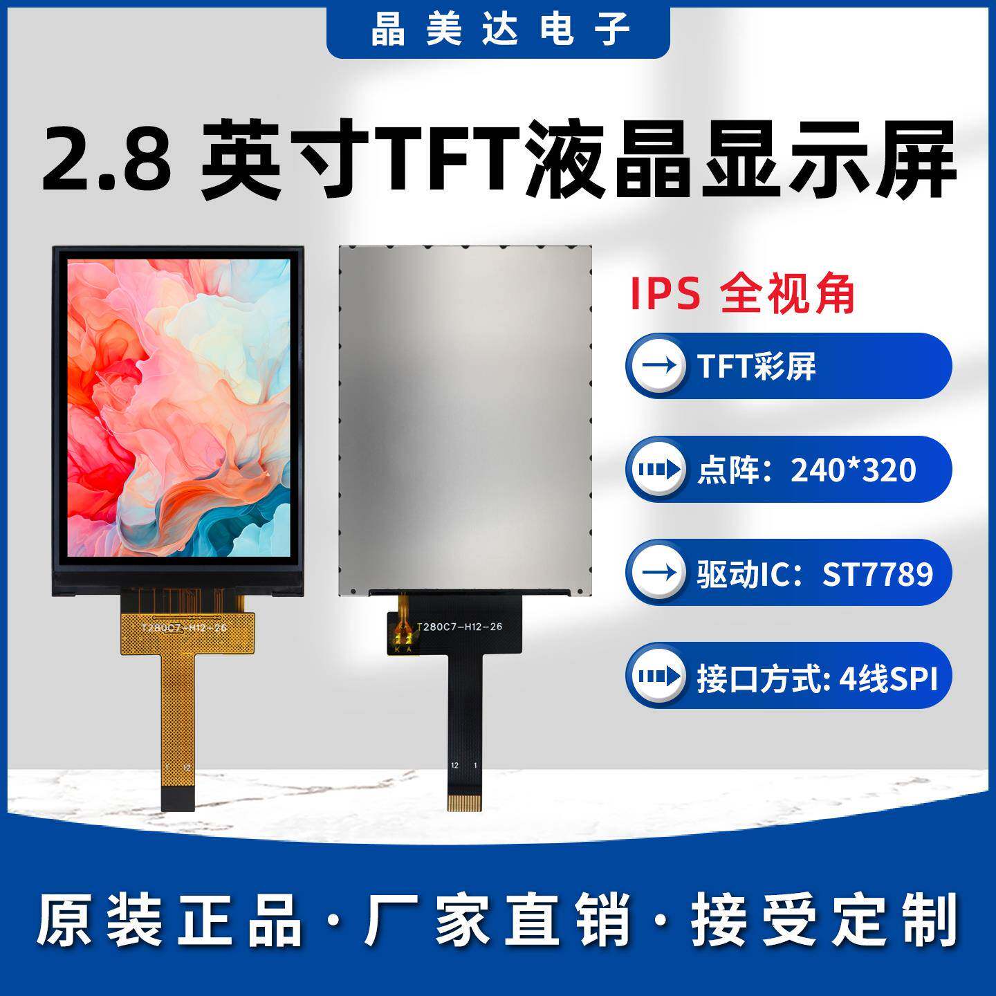 📚 晶美达2.8寸TFT液晶屏ST7789小屏幕240x320显示器LCD彩屏SPI裸屏