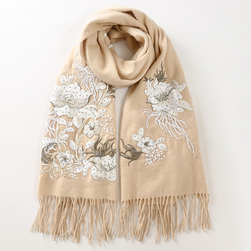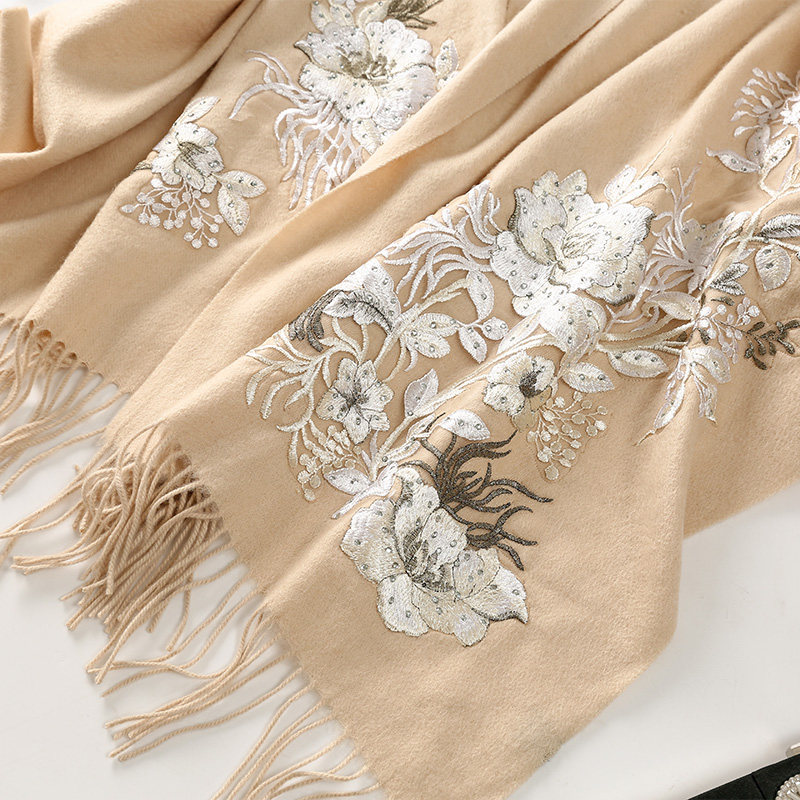 📚 恒源祥羊毛围巾名媛气质妈妈无羊绒披肩中老年斗篷女绣花春秋刺绣