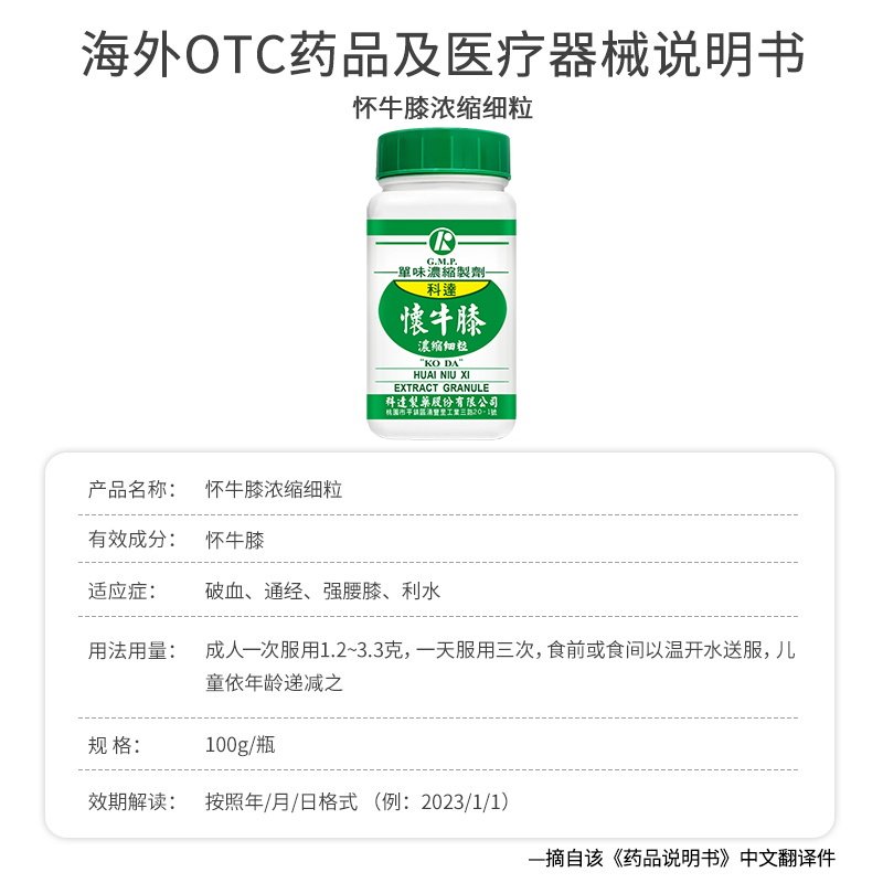 📚 科达制药怀牛膝补肝肾强筋骨利水引火下行台湾中成药官方旗舰100g