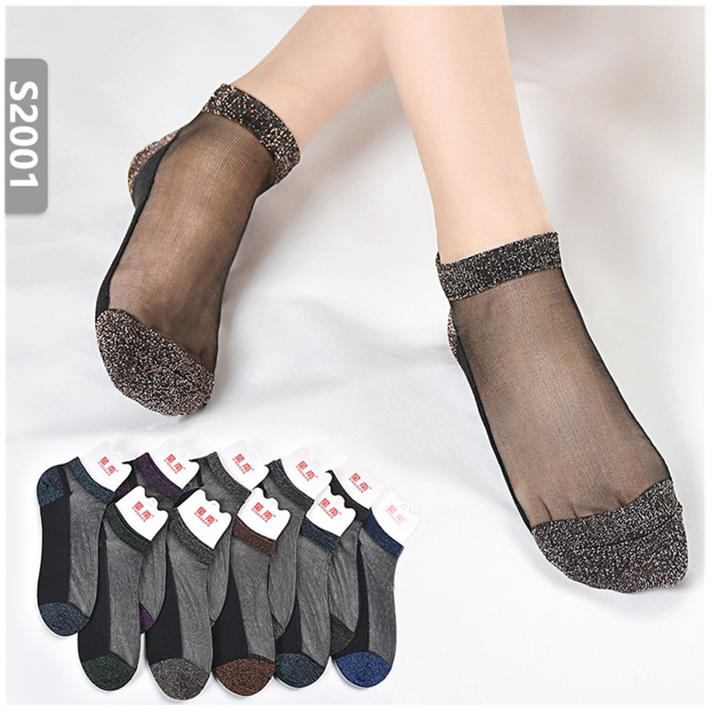 📚 袜子女日系透明玻璃丝袜银葱冰丝水晶袜夏季超薄款纯棉底性感潮袜