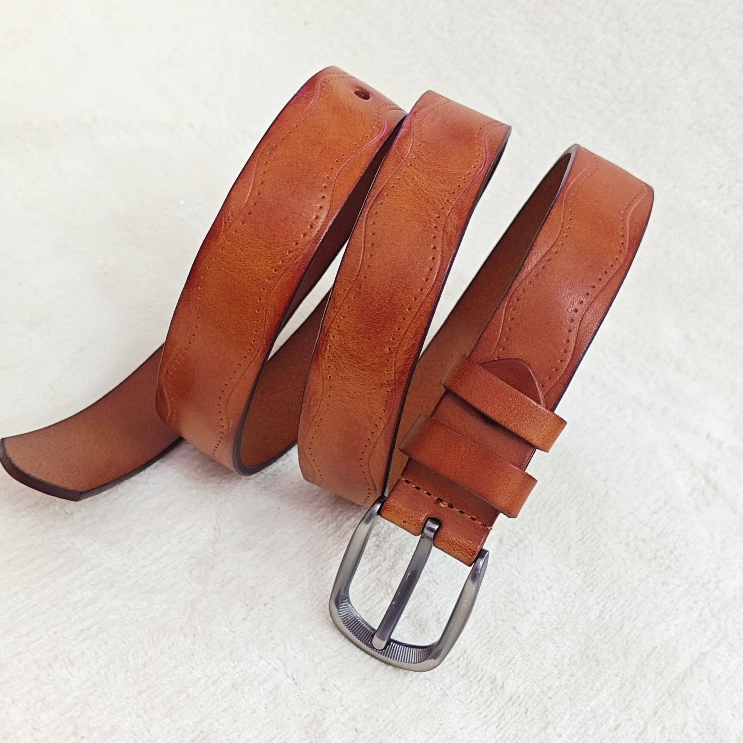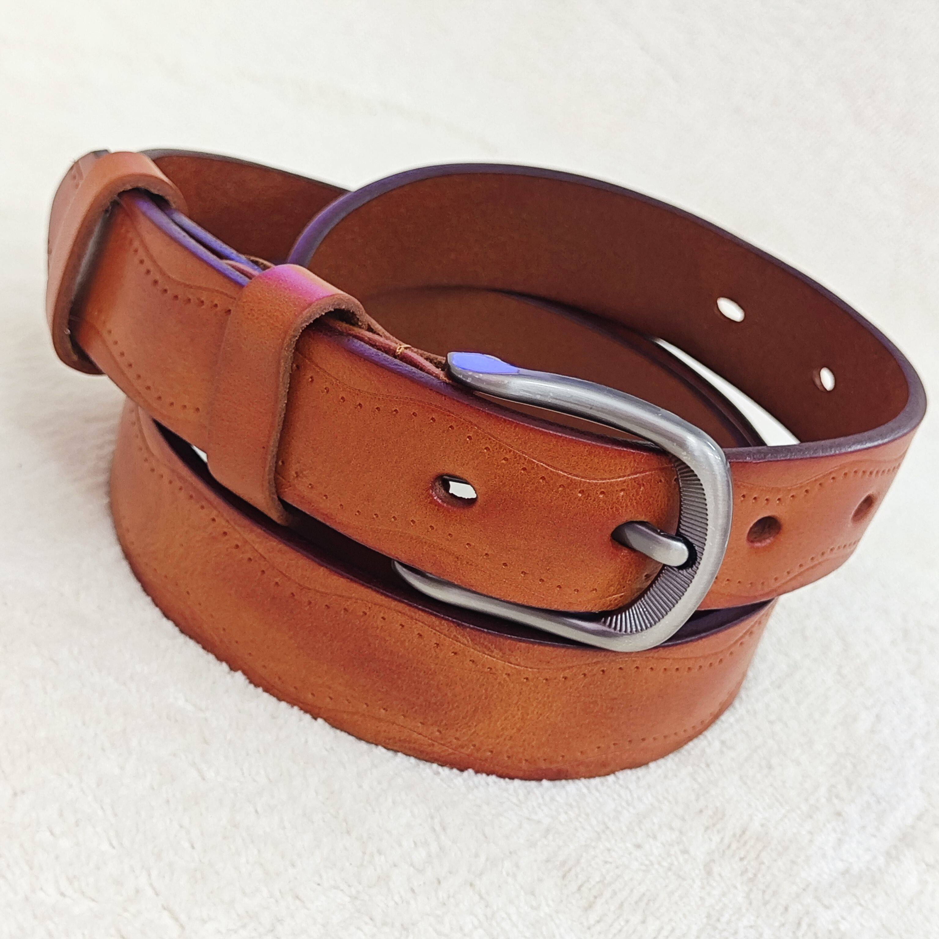 📚 腰带女士新款特色路纹复古针扣头层牛皮简约时尚百搭品牌穆皮狼。