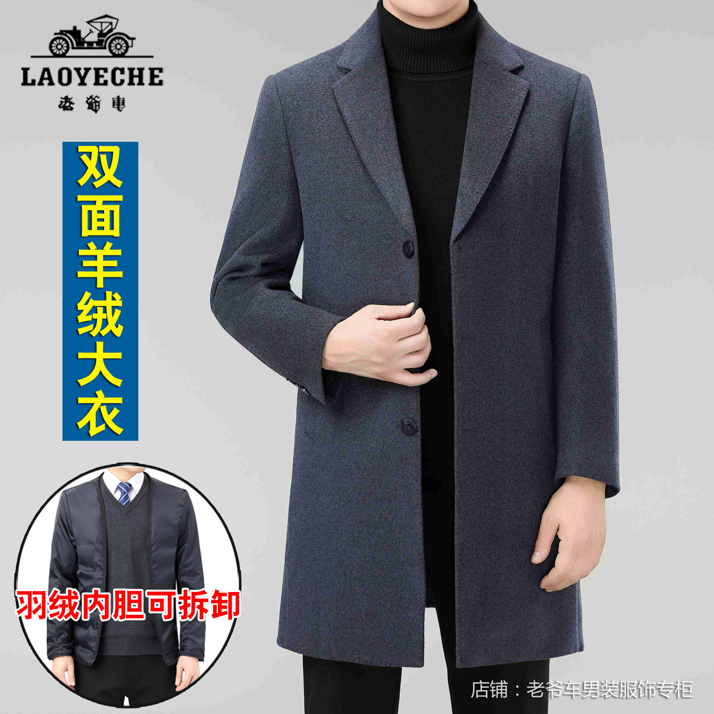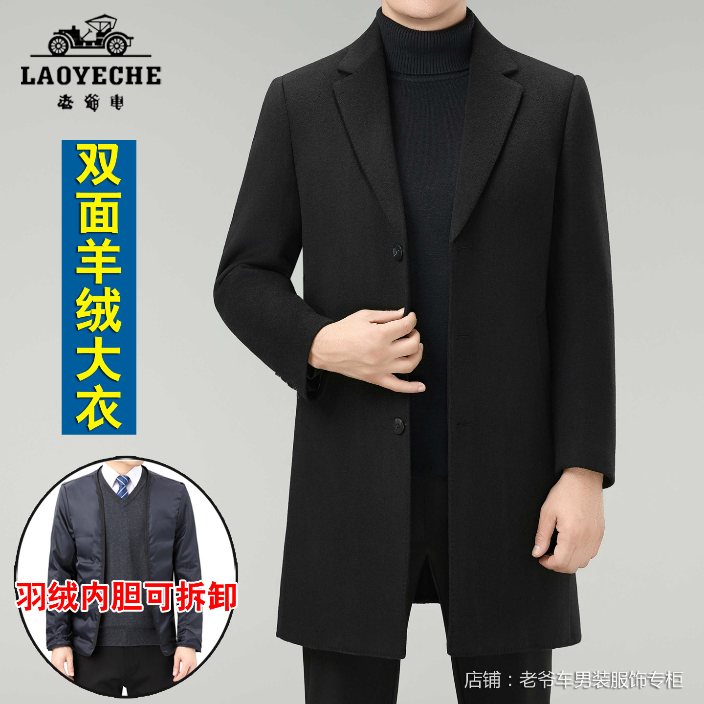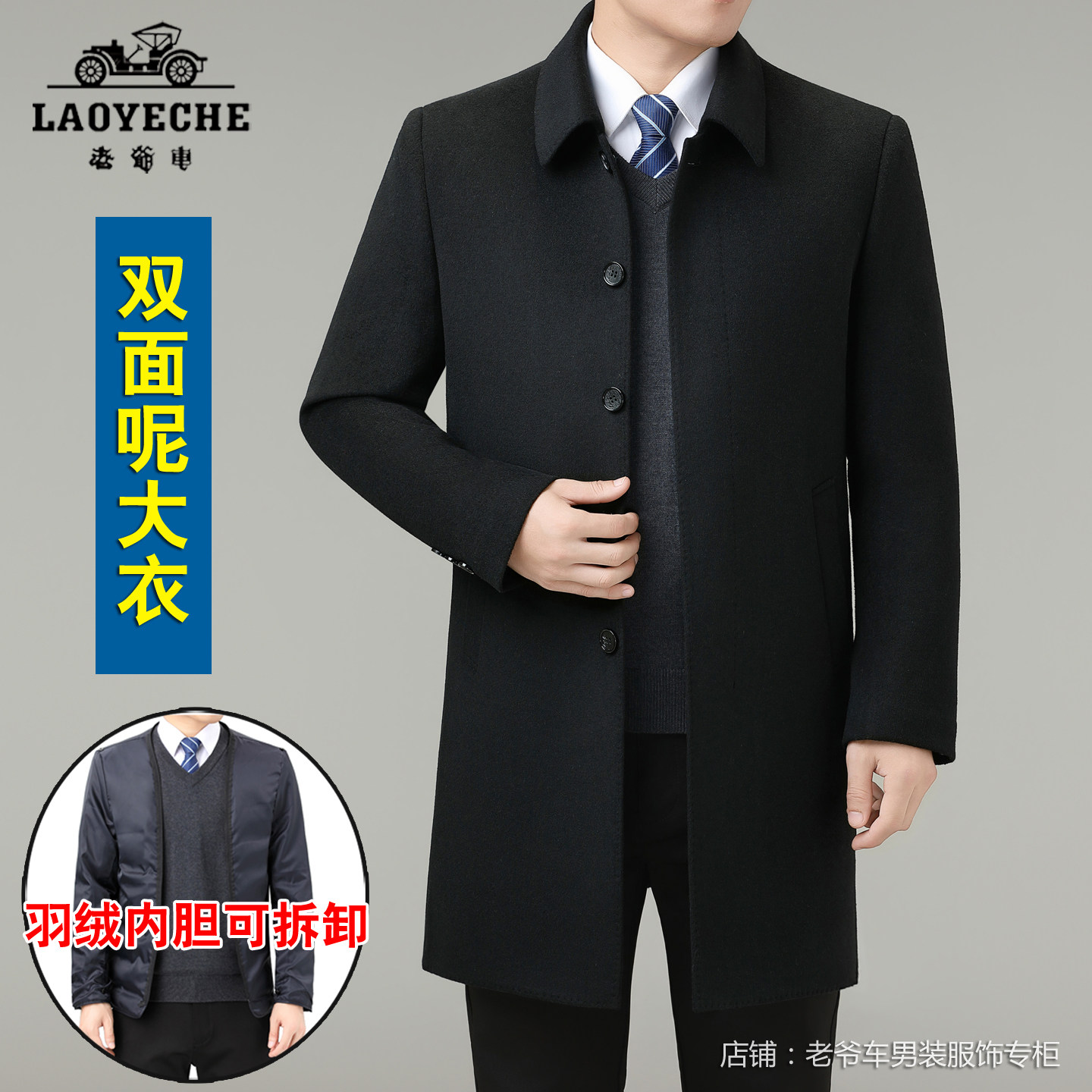 📚 老爷车西装领大衣男中长款羊毛呢子外套爸爸羊绒双面呢三扣子西服