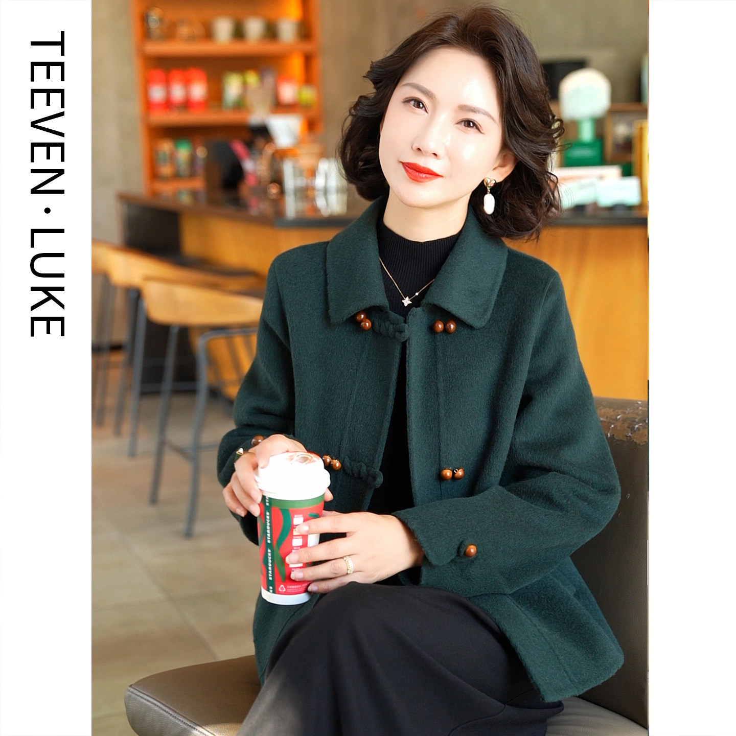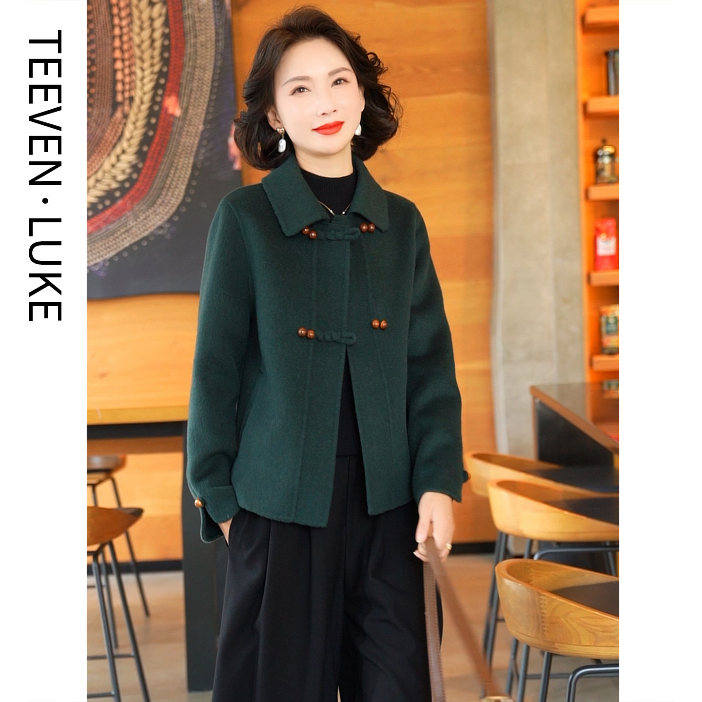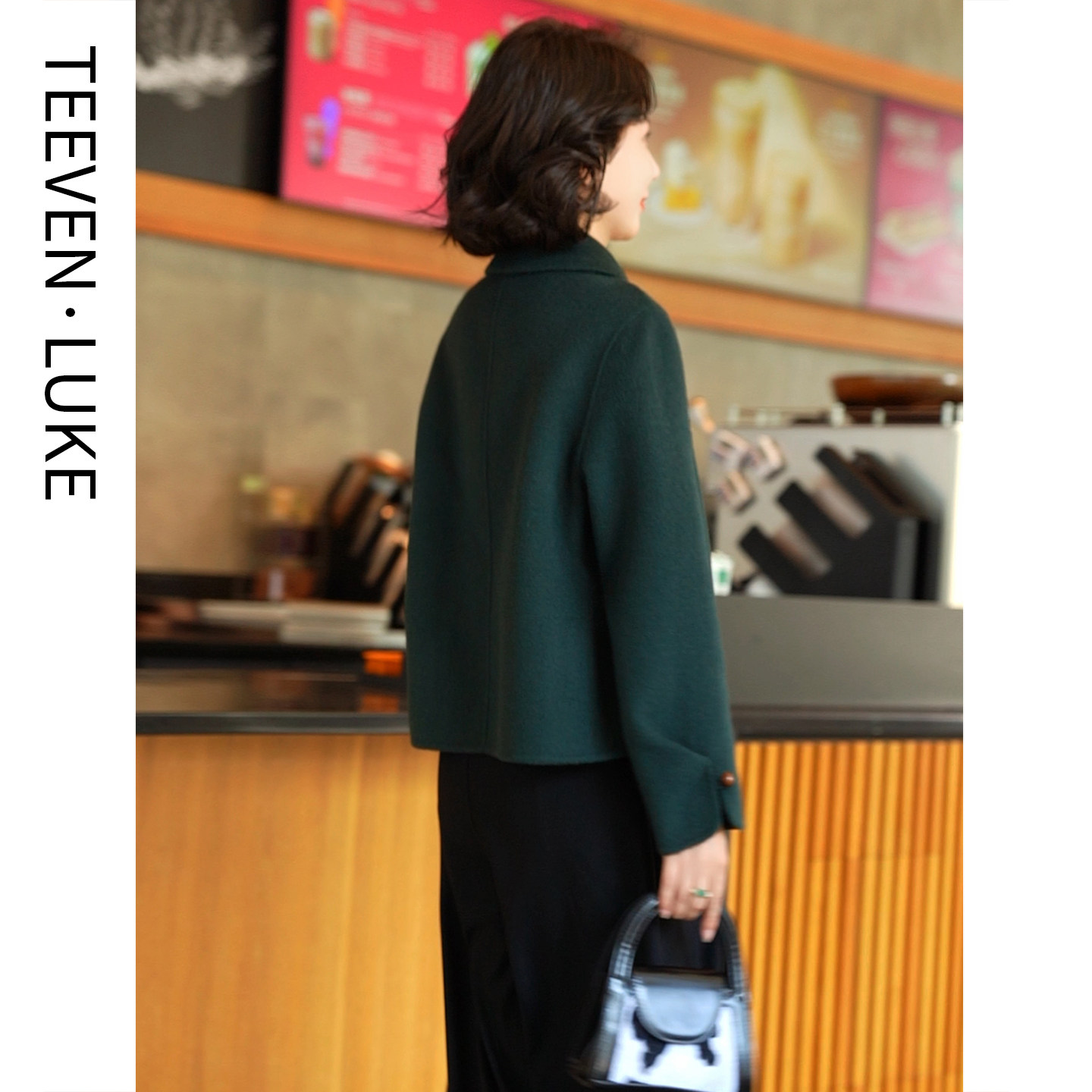 📚 秋冬2025新韩式双面呢羊毛大衣女绿色气质毛呢外套时尚百搭显瘦