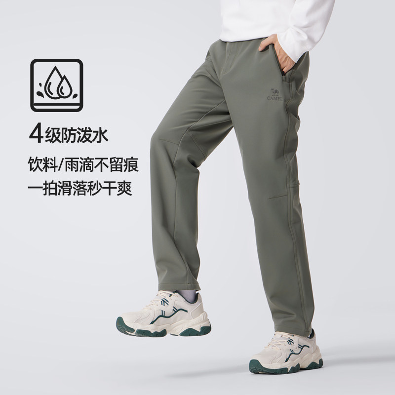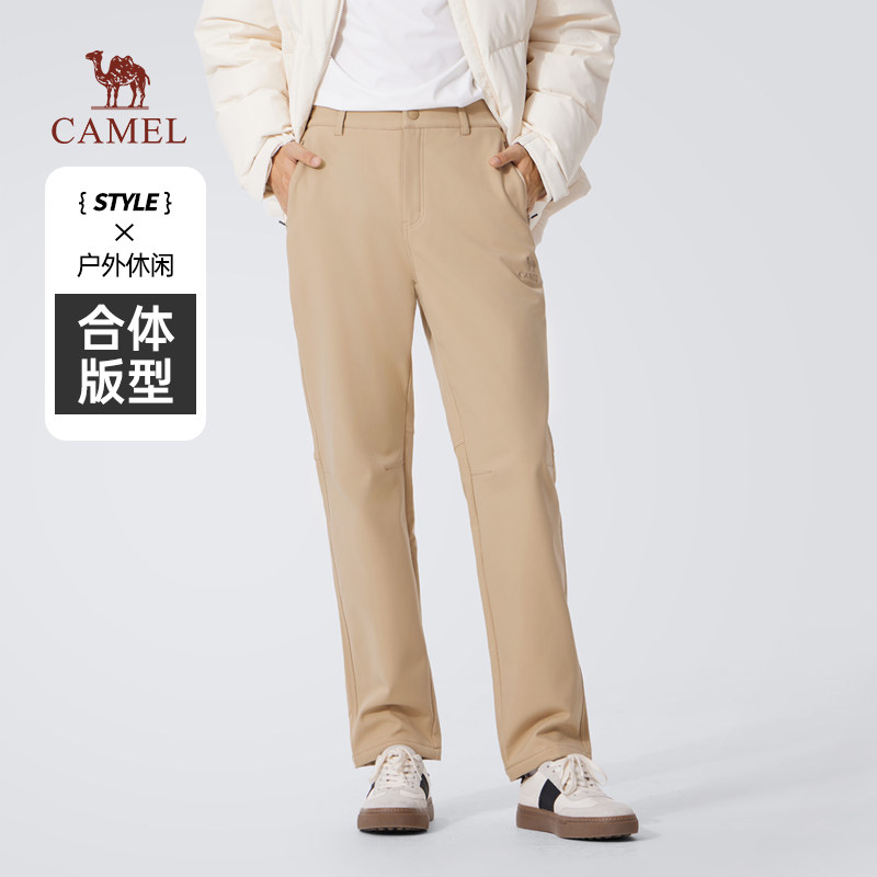 📚 骆驼男装软壳休闲裤男2026春季加绒保暖防泼水黑色休闲长裤子
