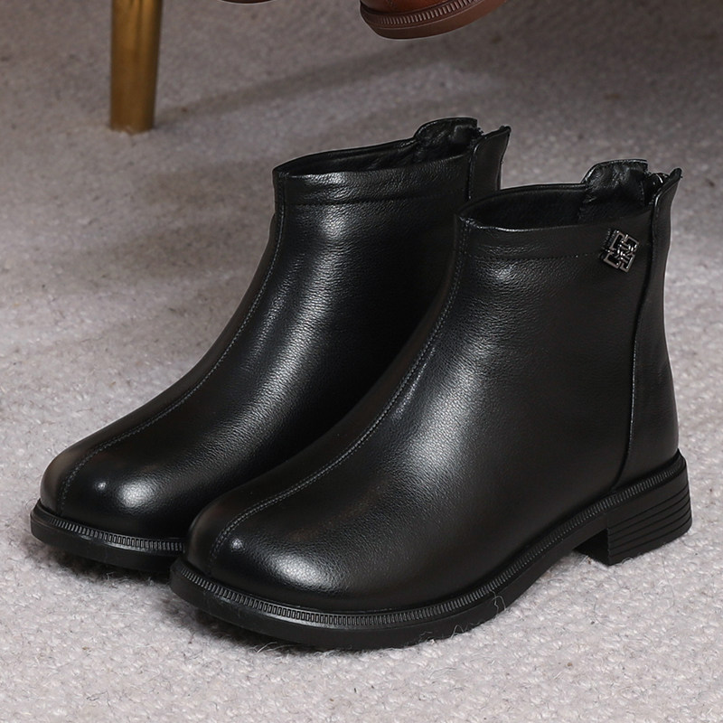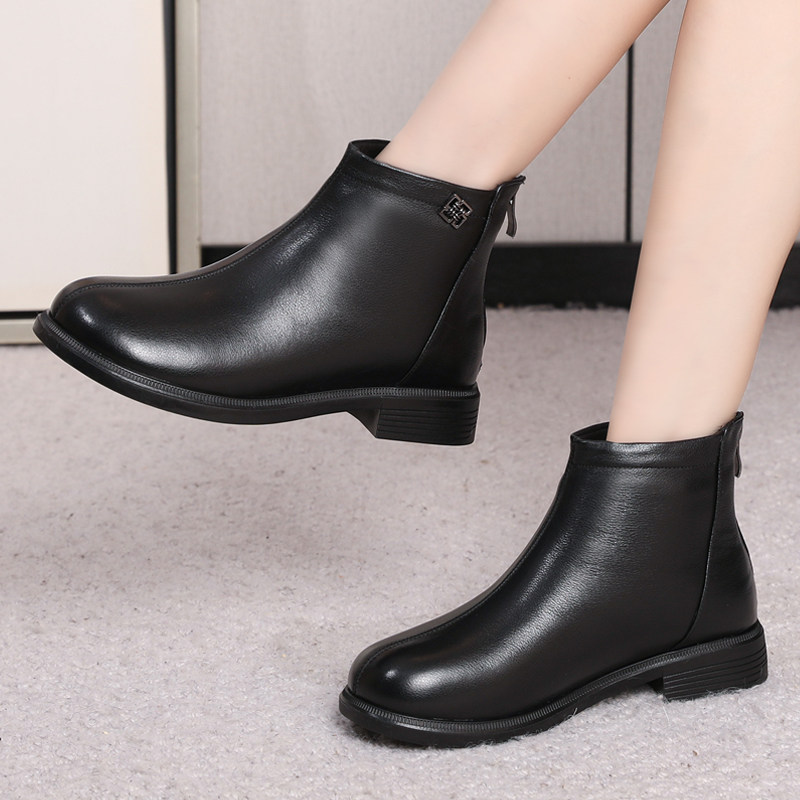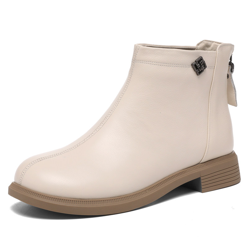 📚 2026新款真皮休闲短靴大码女鞋春秋平底马丁靴后拉链软底短筒单靴