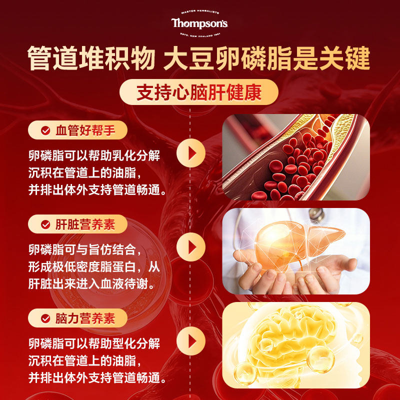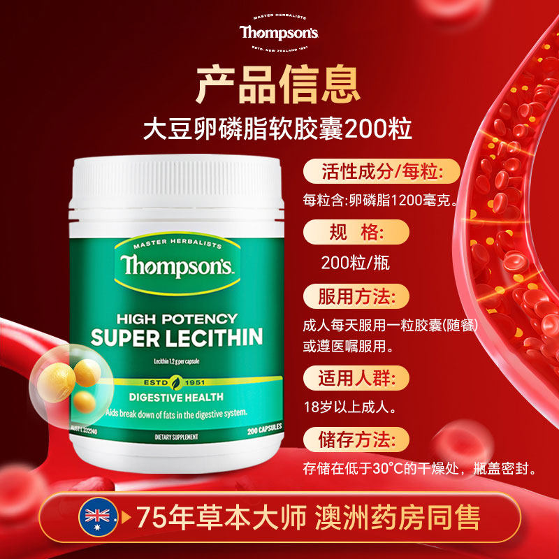 📚 Thompsons汤普森大豆卵磷脂胶囊200粒助益中老年保护血管百亿补贴
