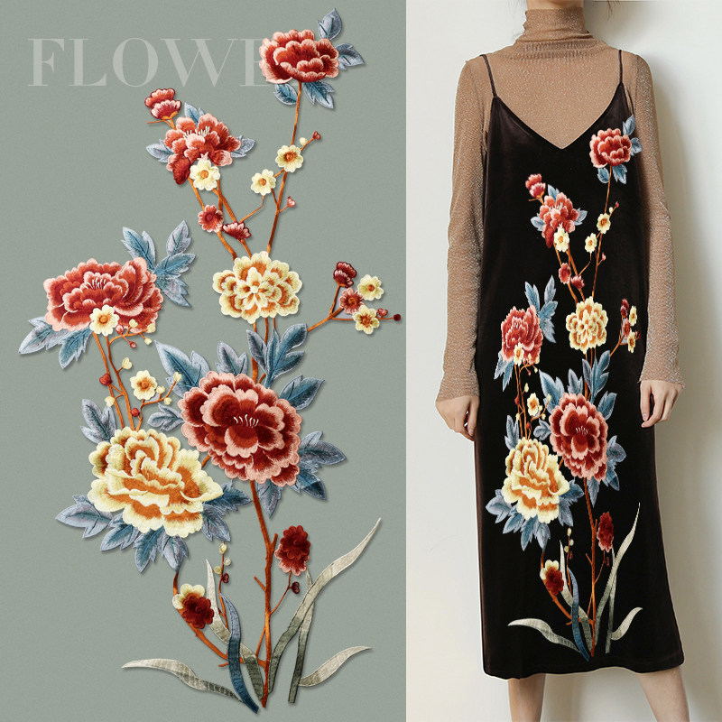 📚 超大片芍药牡丹花绣片补丁布贴连衣裙服装定制辅料花边花朵手缝款
