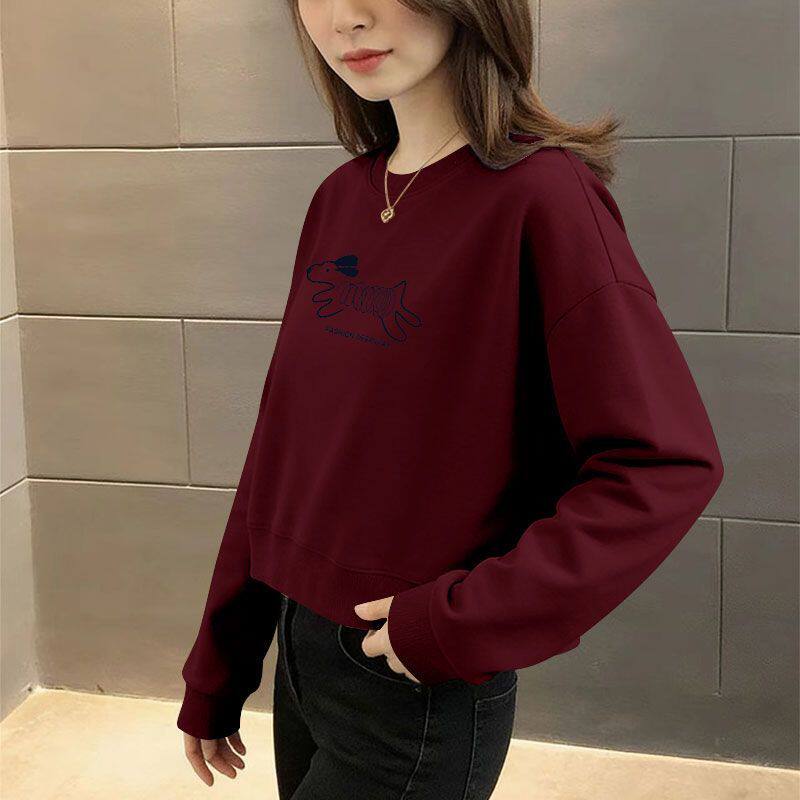 📚 加绒加厚短款卫衣女秋冬新装简约减龄百搭休闲遮肉印花上衣女