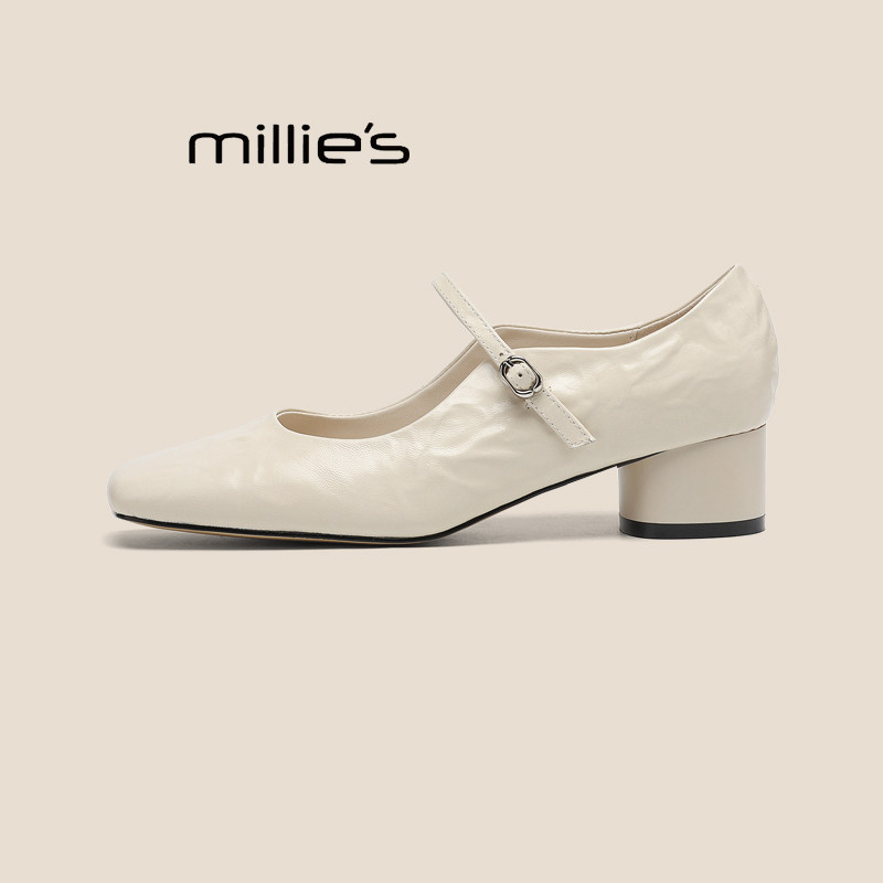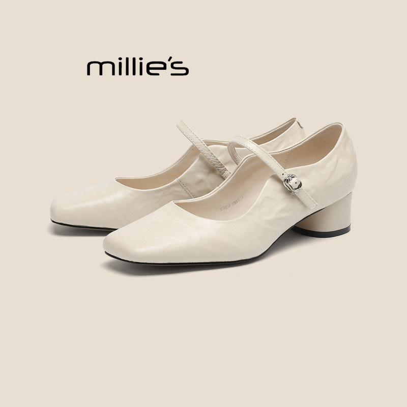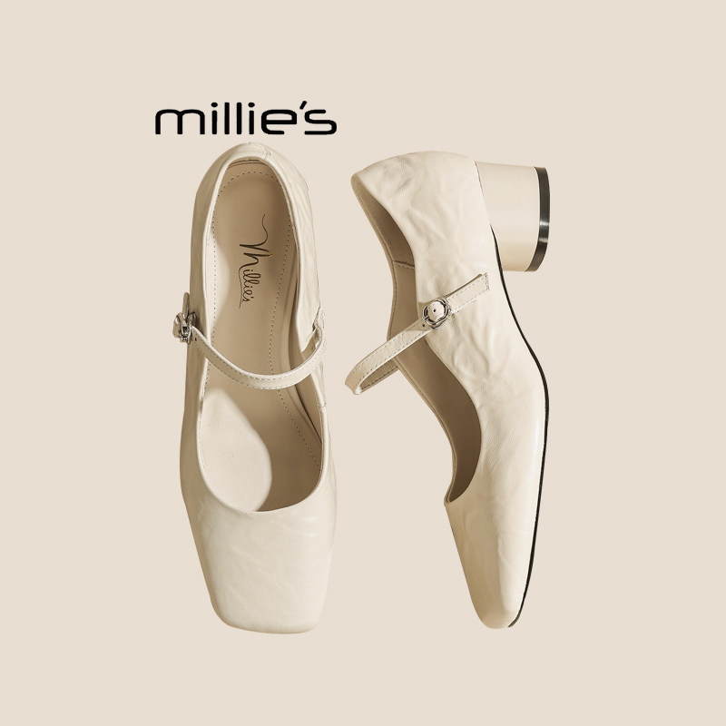 📚 MILLIE'S/妙丽新款方头浅口一字扣带玛丽珍女鞋低跟平底单鞋女夏