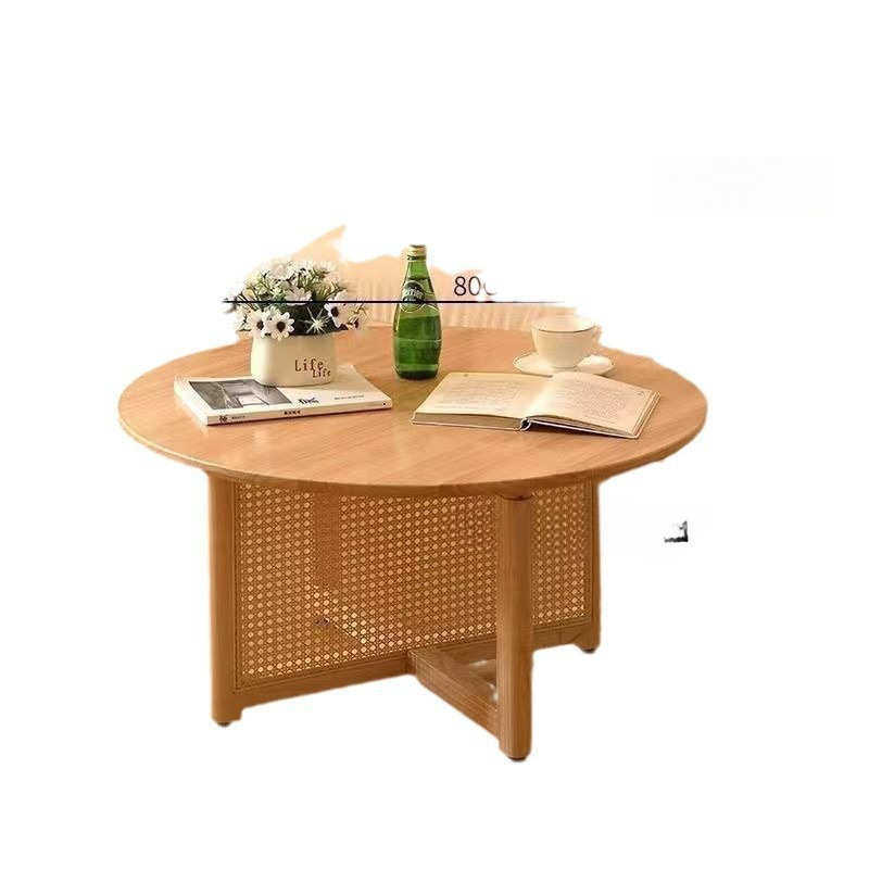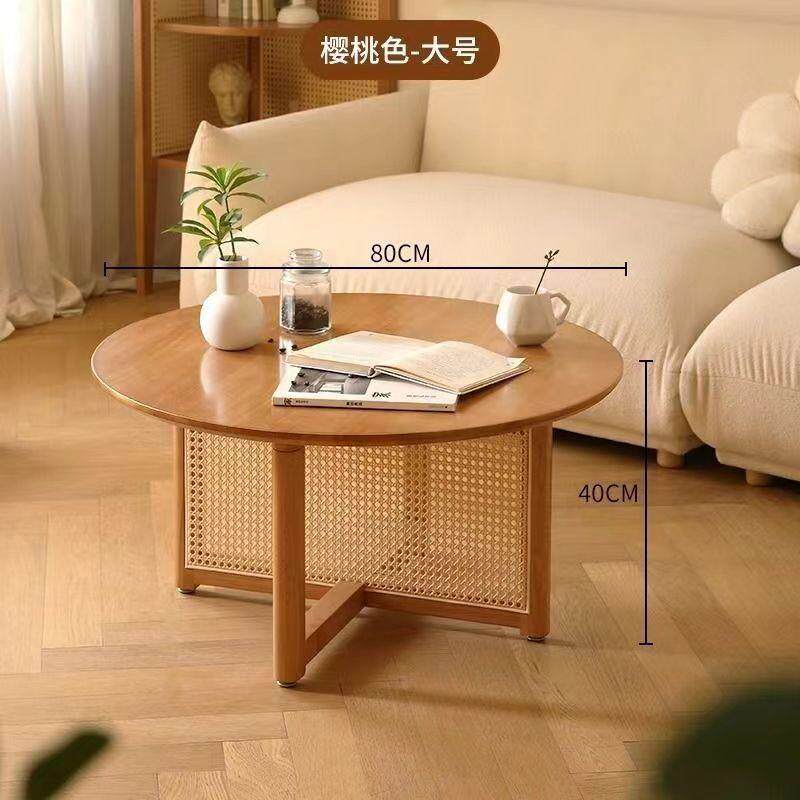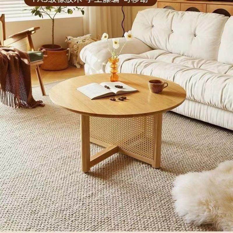 📚 日式原木实木藤编茶几简约客厅阳台家用小户型圆形沙发桌子茶桌子