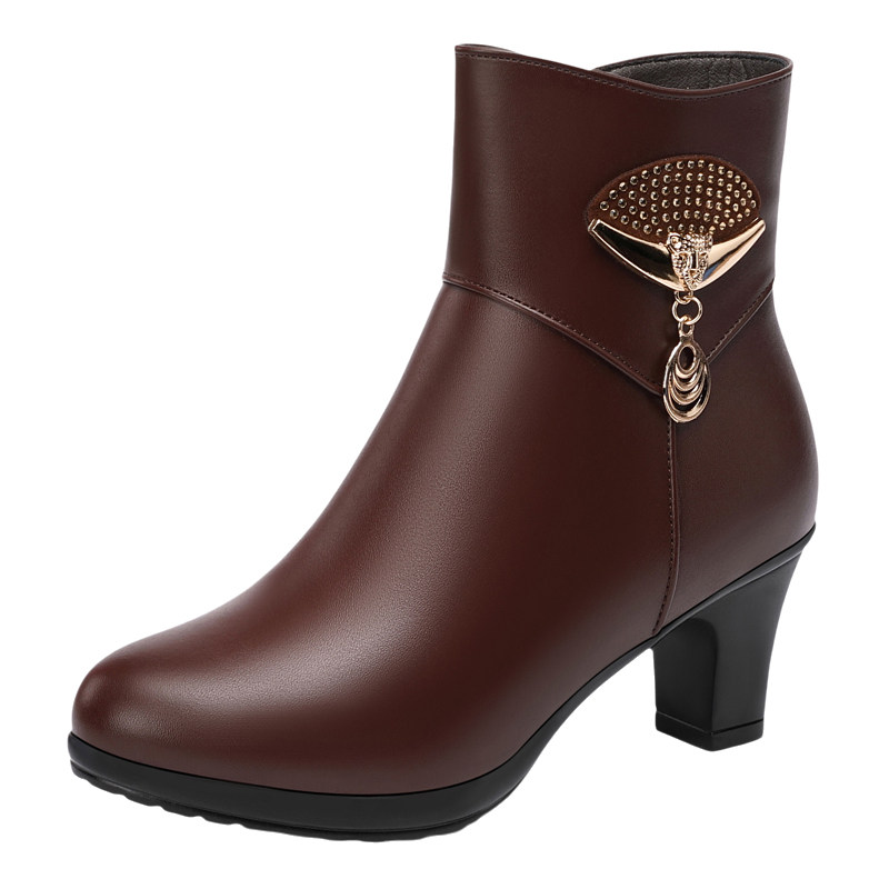 📚 妈妈鞋棉鞋真皮中年女鞋软皮鞋防滑秋冬季中跟短靴子保暖加绒棉靴
