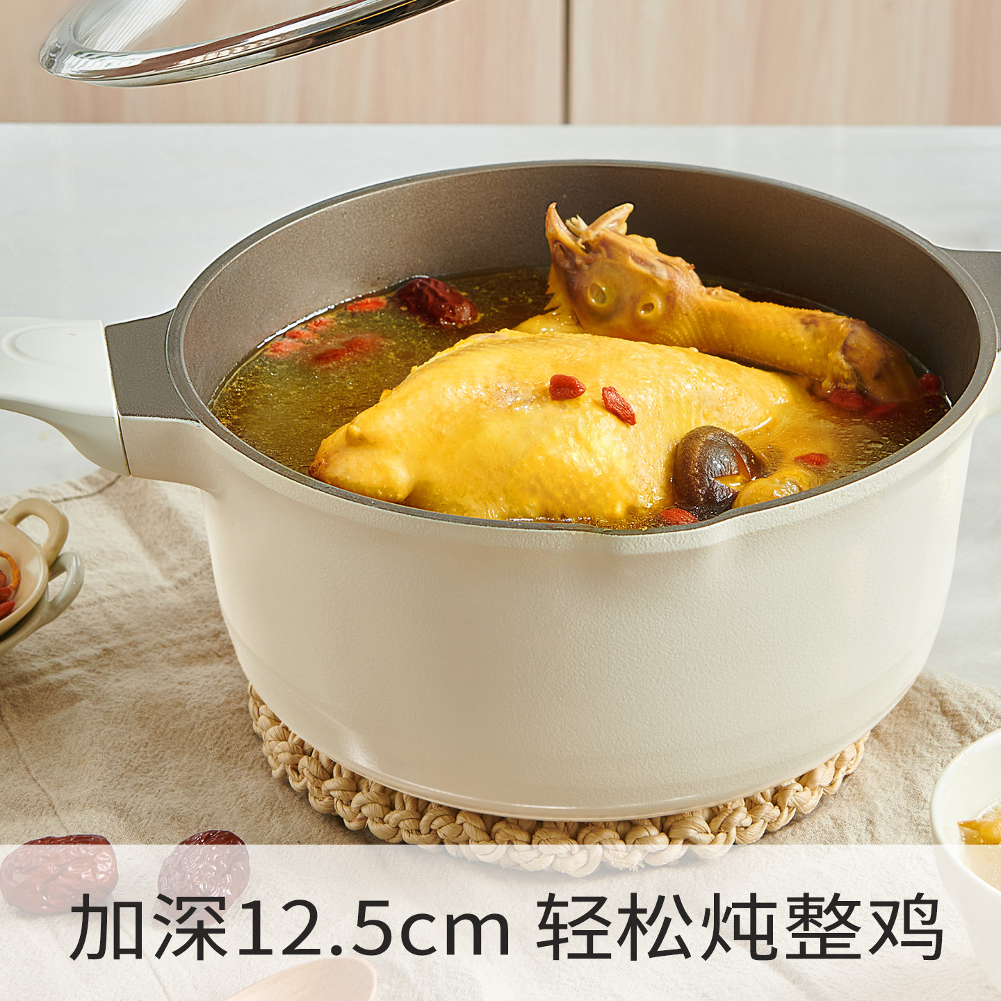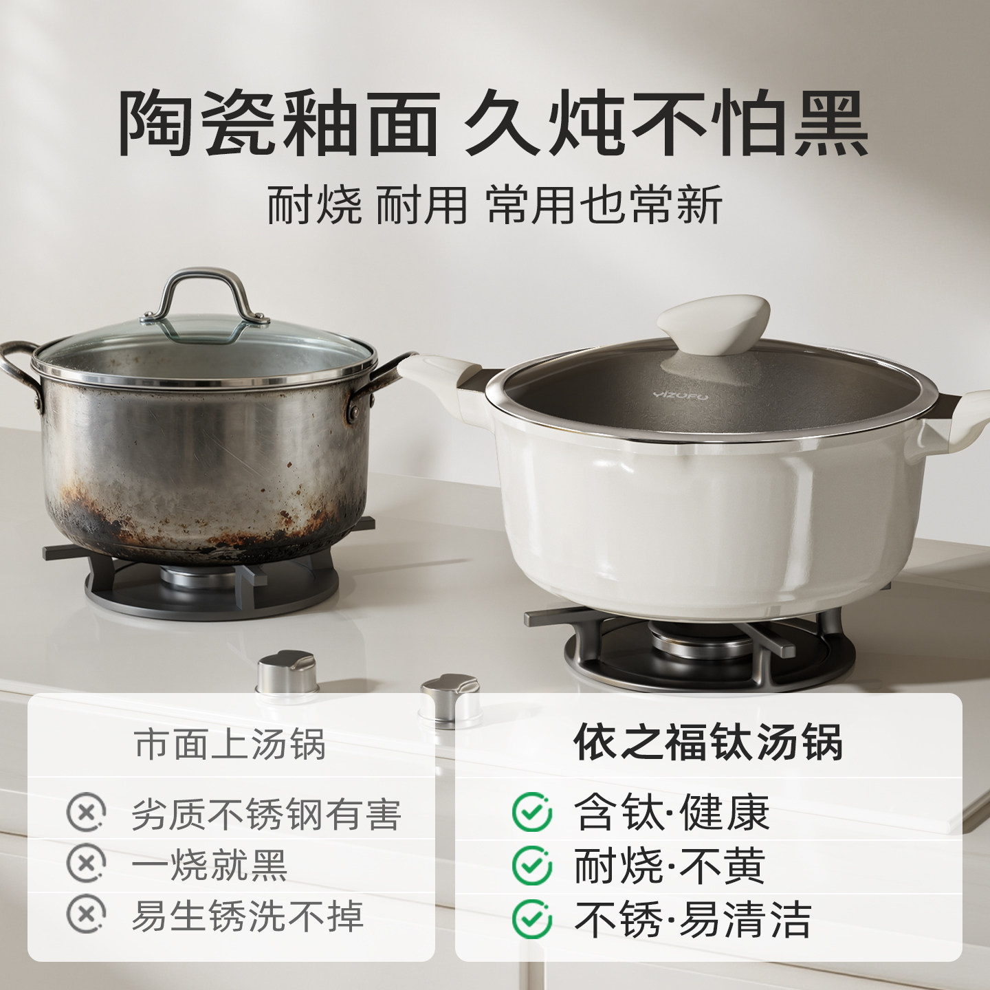 📚 钛陶瓷无涂层不粘汤锅家用双耳炖煮锅煲汤电磁炉燃气专用搪瓷锅X