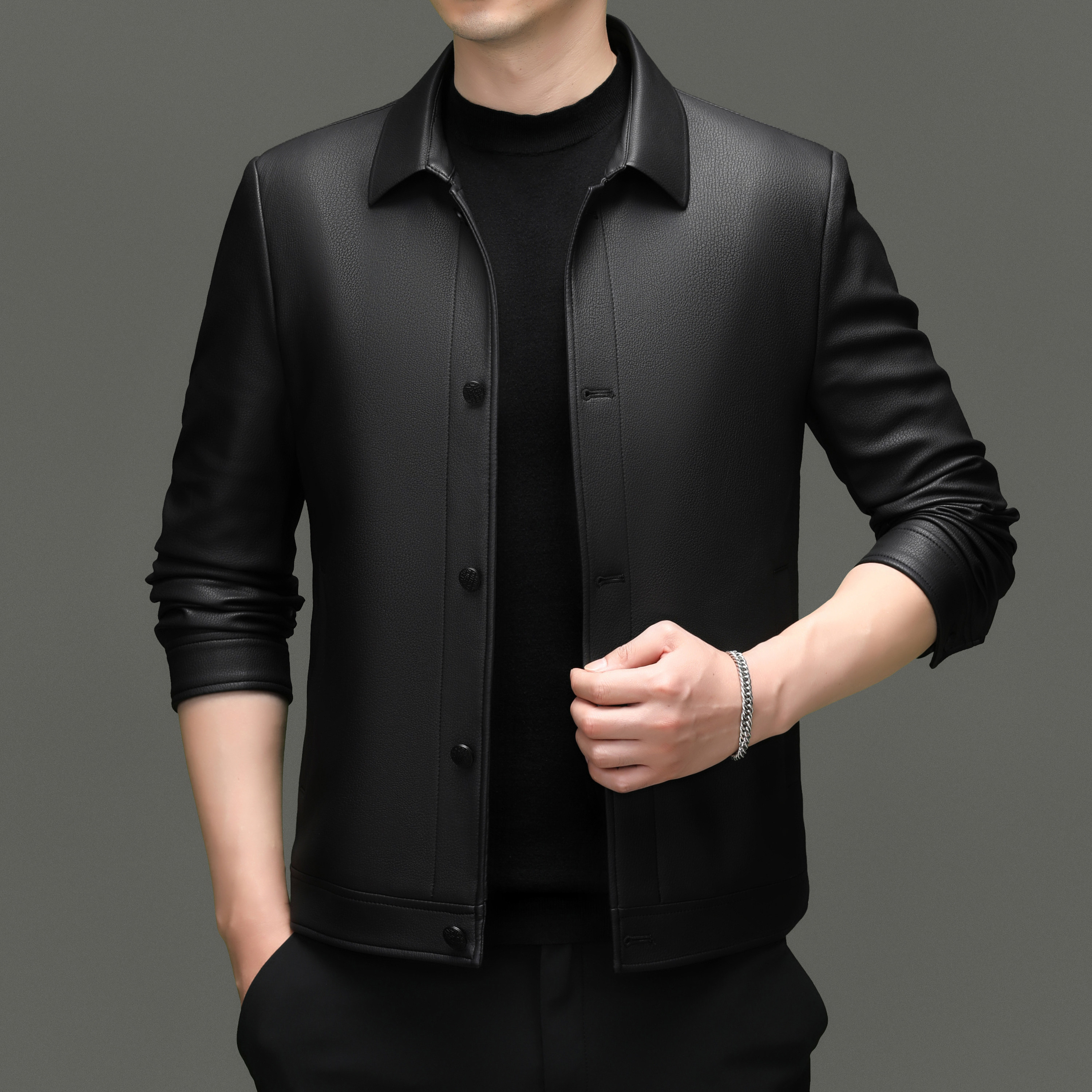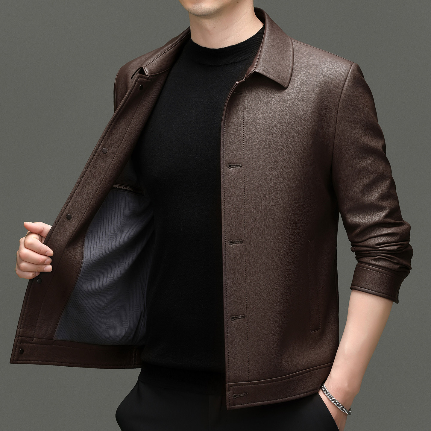 📚 2025新款秋冬绵羊皮真皮皮衣男士加厚保暖宽松翻领短款皮夹克外套