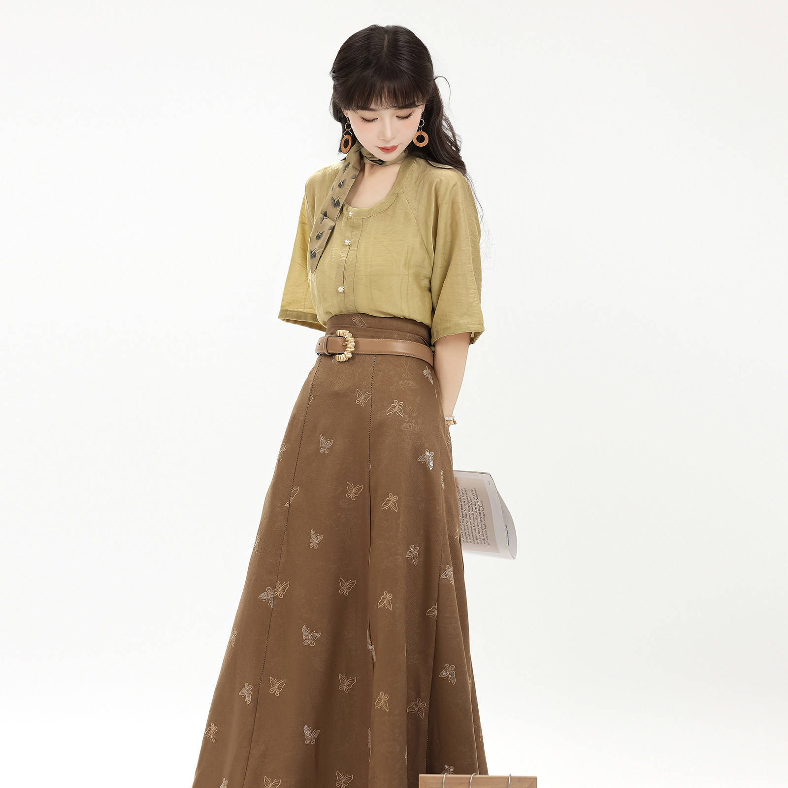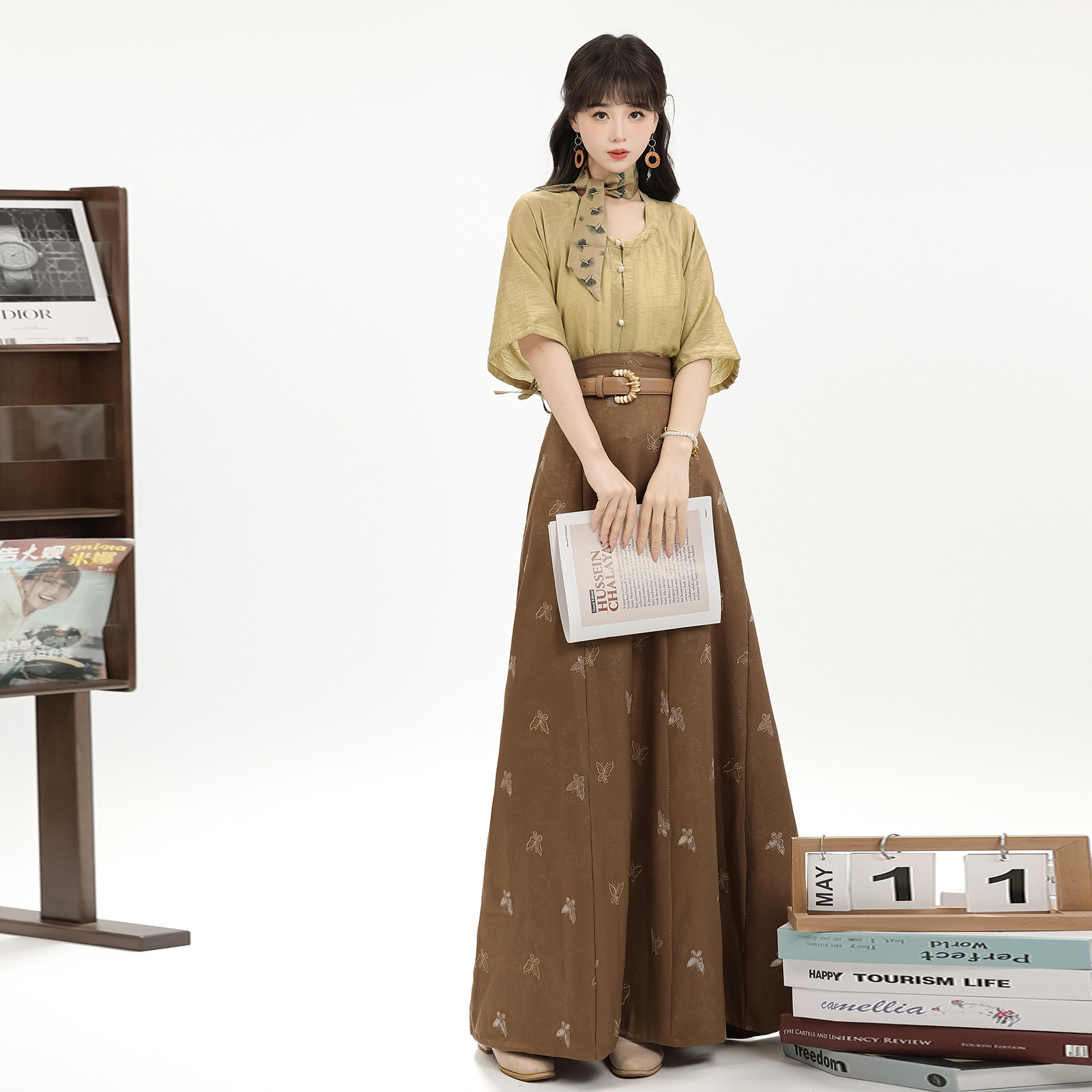 📚 新款【月棠】原创汉服女改良日常通勤刺绣八破裙圆领对襟夏新中式
