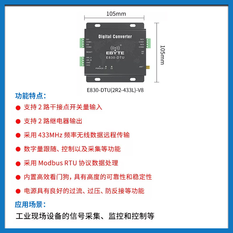 📚 亿佰特LoRa无线数传电台采集数字开关量无线控制modbus模块 rtu