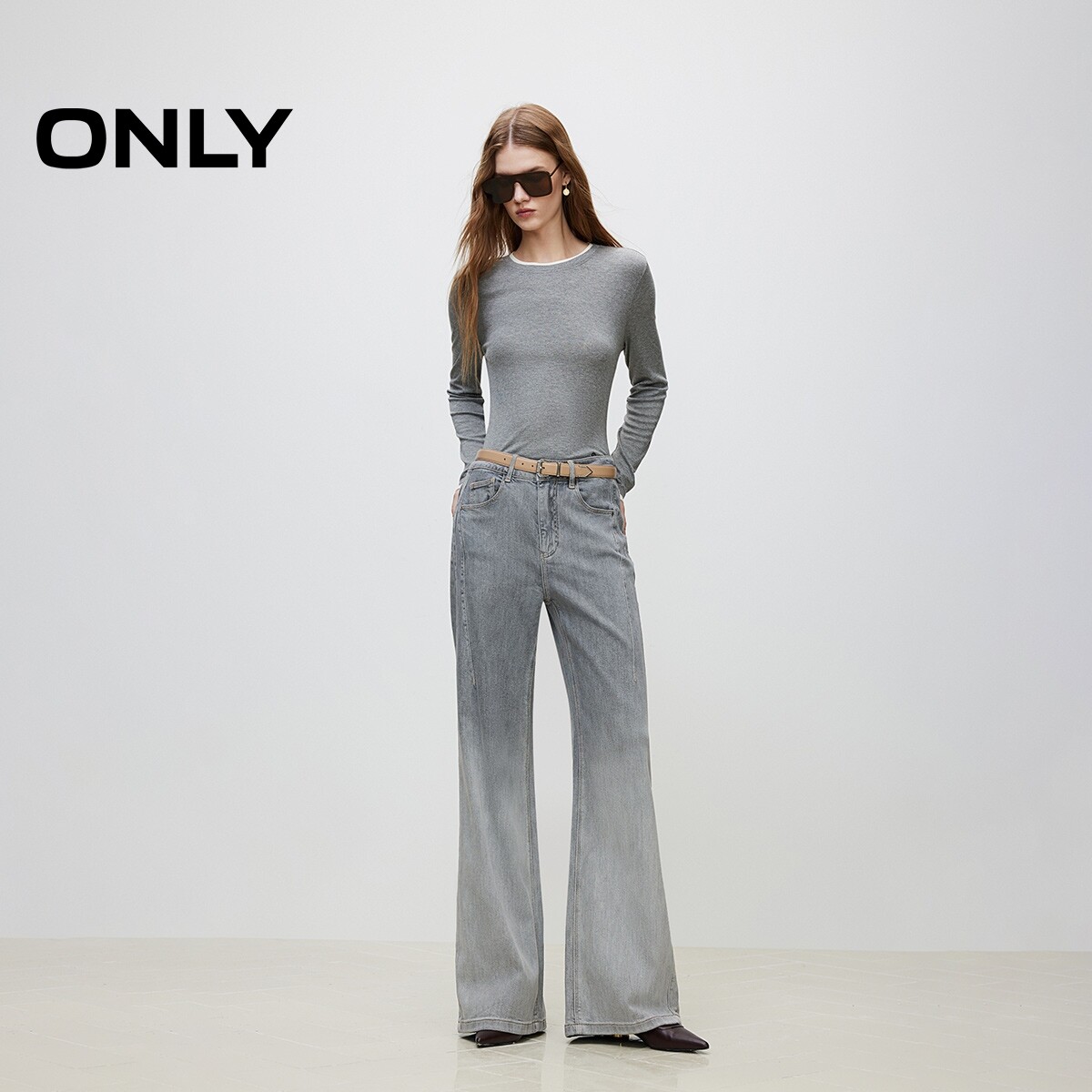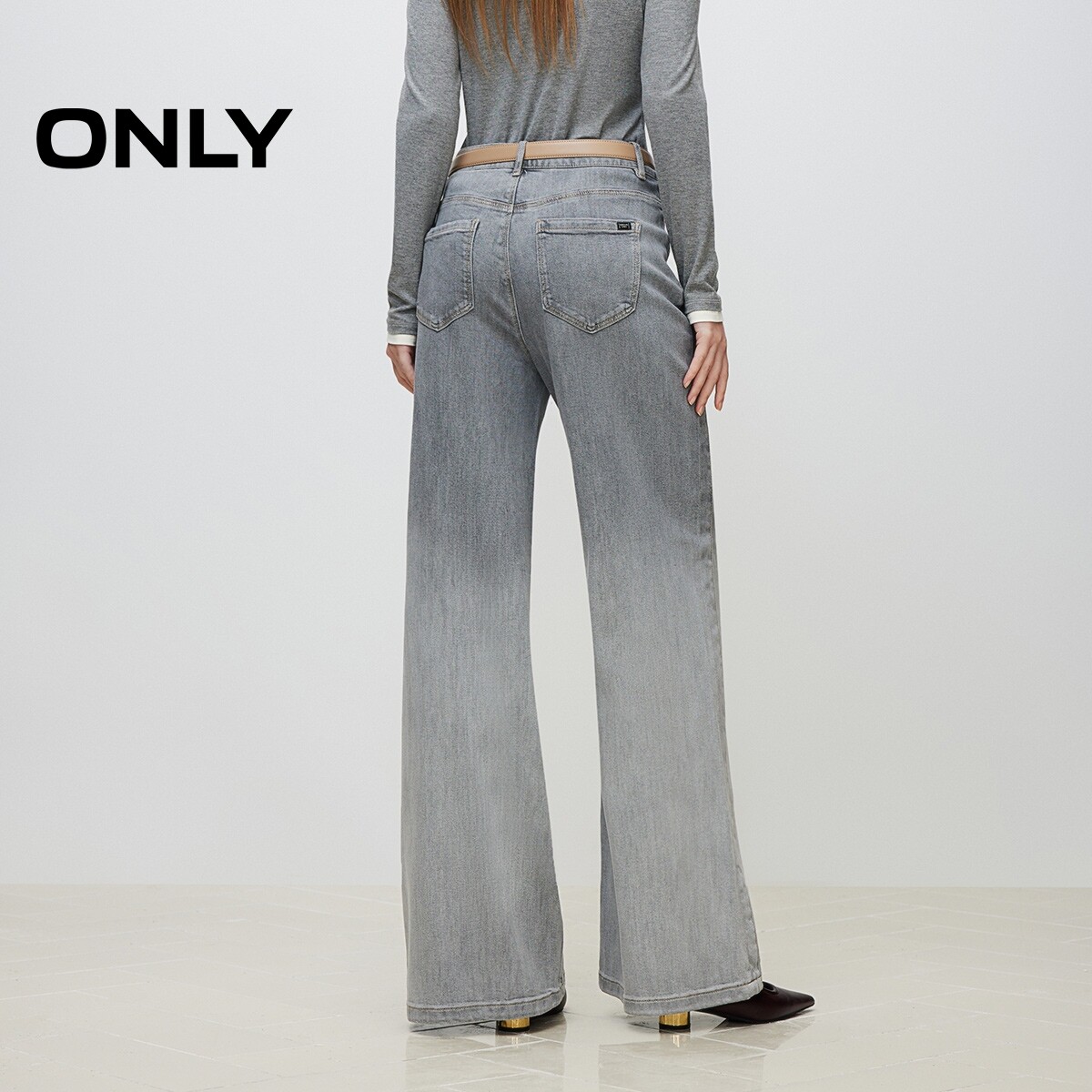 📚 【ONLY奥莱】春季复古水洗舒适休闲宽松高腰喇叭裤长裤牛仔裤女