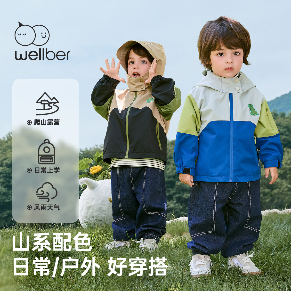 📚 威尔贝鲁儿童冲锋衣男童外套防水防风户外上衣宝宝春秋连帽外套女