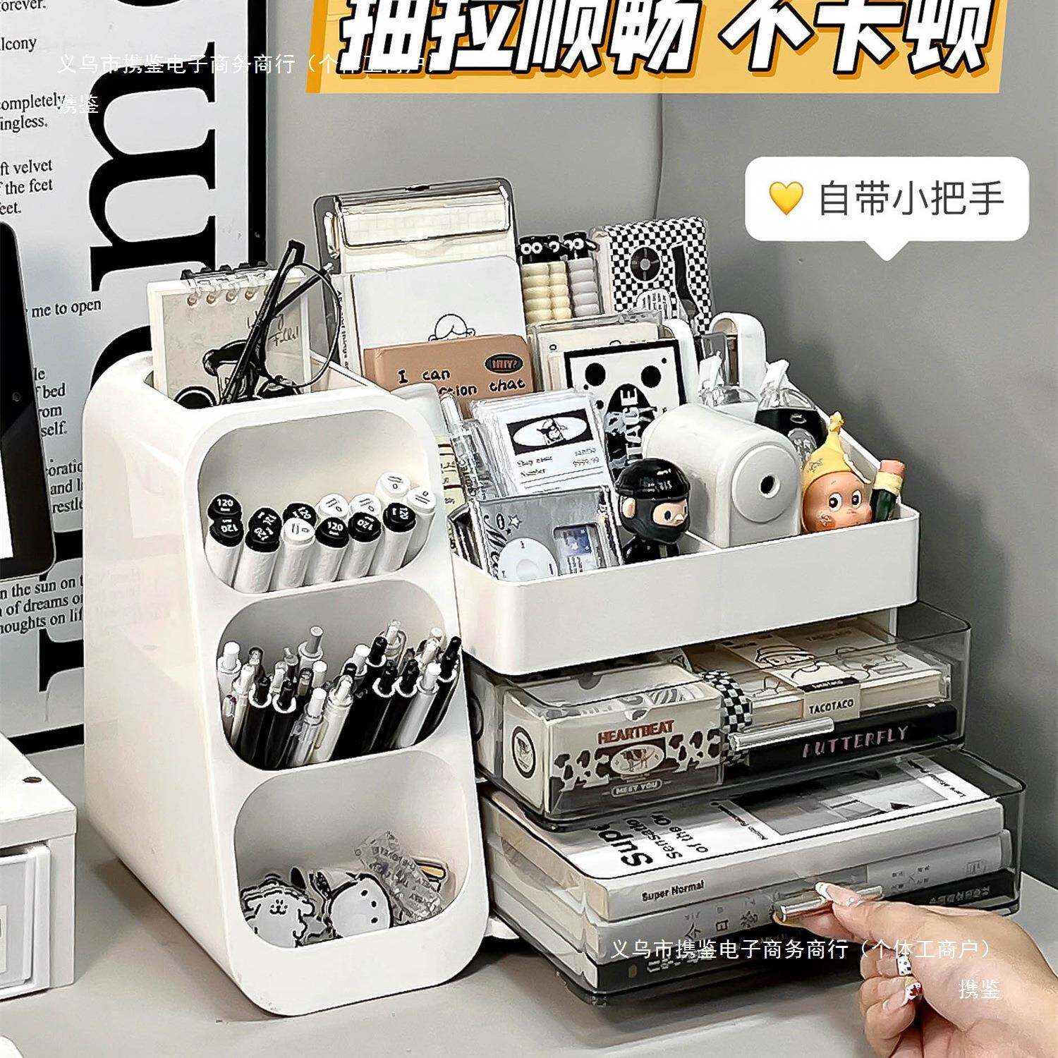 📚 985桌面屉收纳盒办抽公室工桌位书文具整理盒多功办能公桌置携鉴