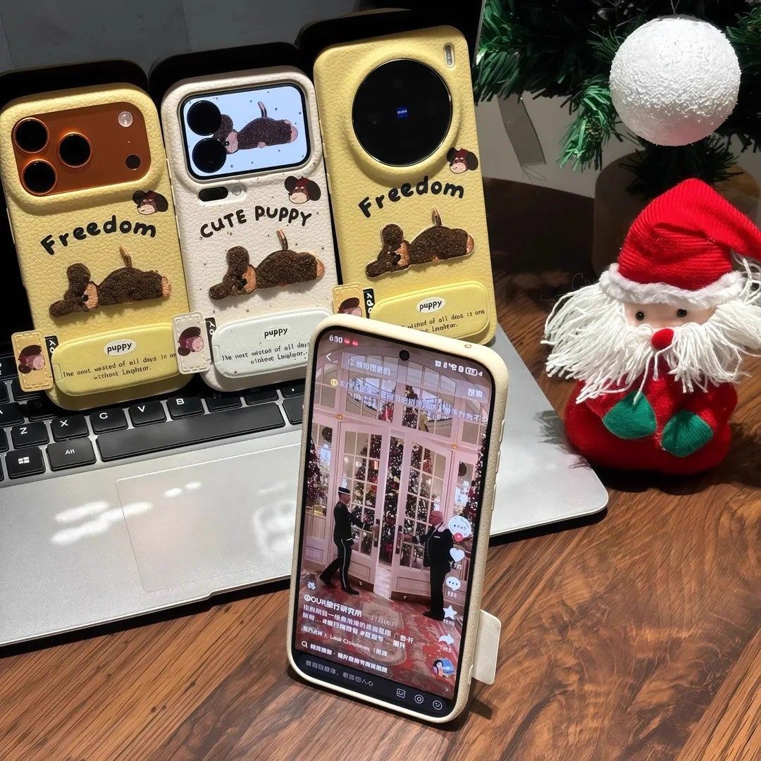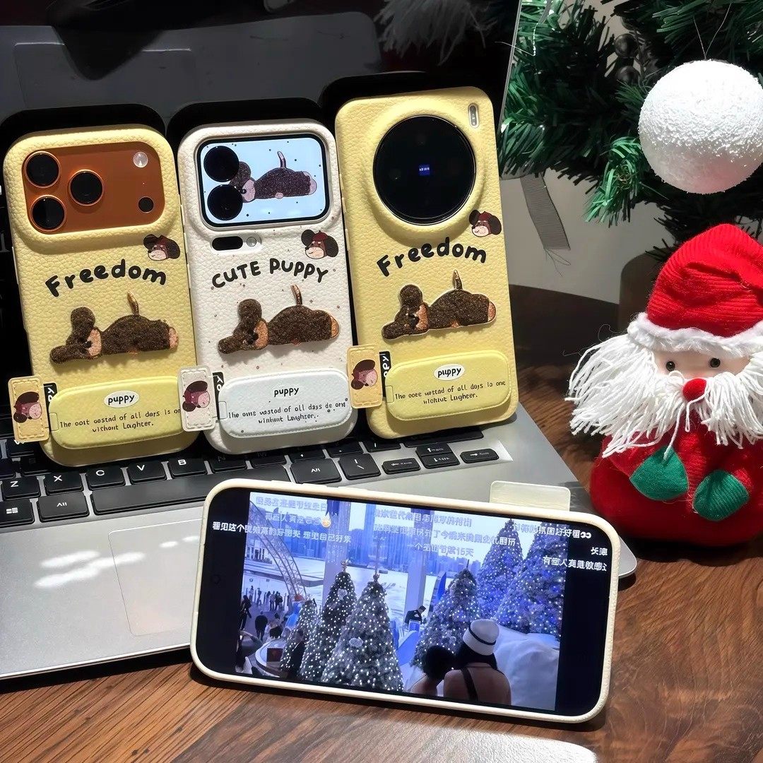 📚 情侣趴趴小狗标签适用苹果17手机壳iPhone16promax新款vivo华为nova14可爱OPPOreno15毛绒y100i红米k90promax