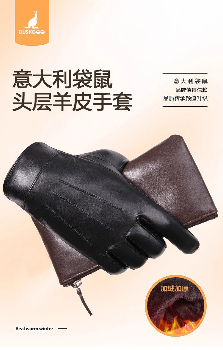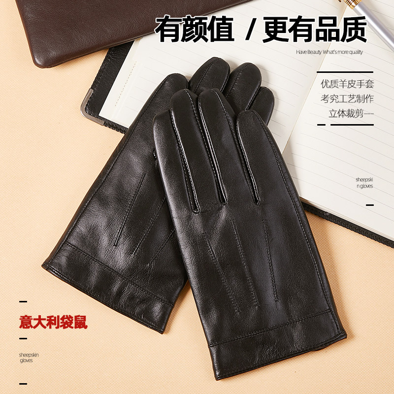 📚 高端山羊皮贴手男士真皮手套单层开车触屏秋冬季骑行加绒保暖薄款