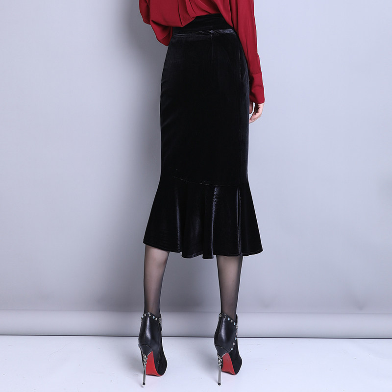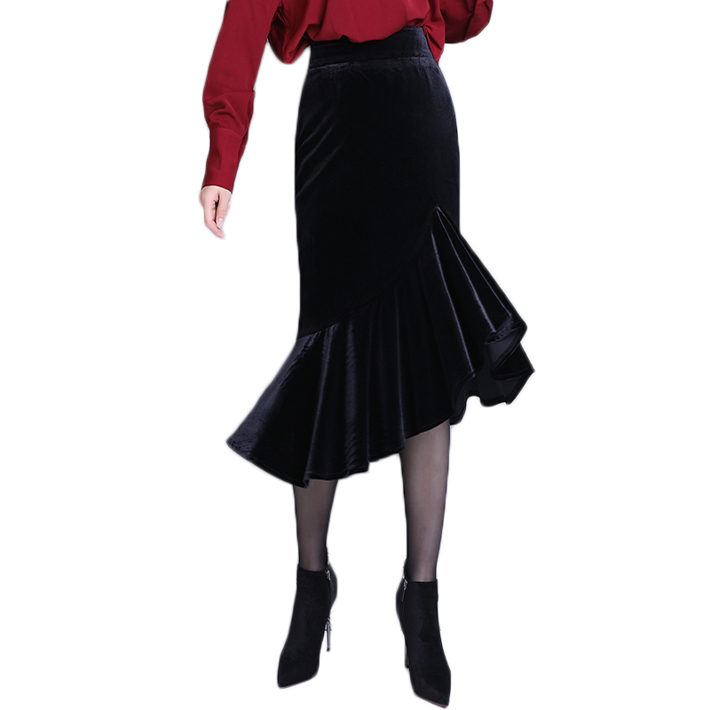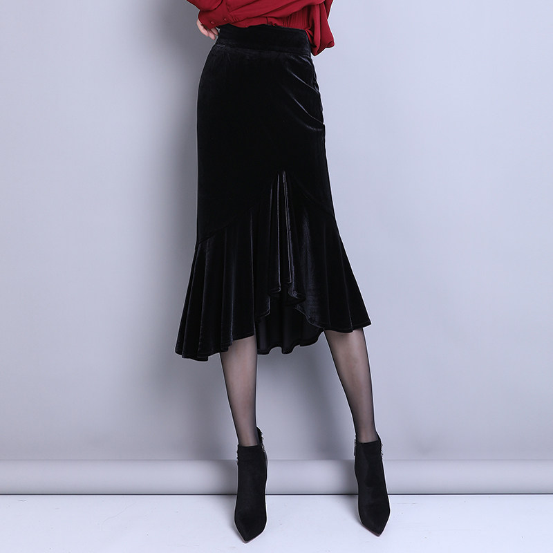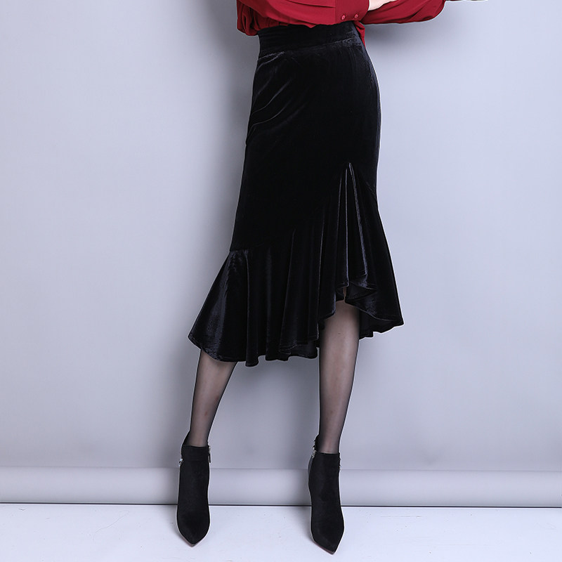 📚 金丝绒鱼尾裙半身裙女秋冬季新款设计感不规则a字裙荷叶边中长裙