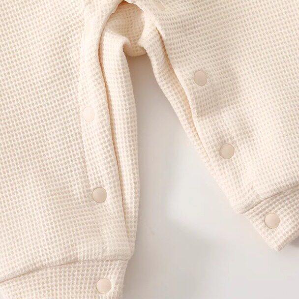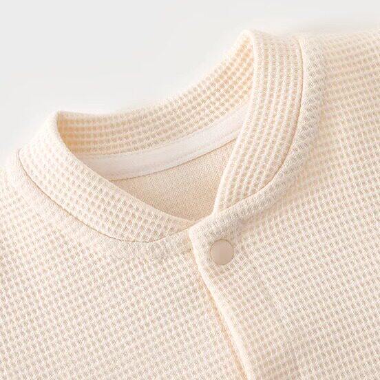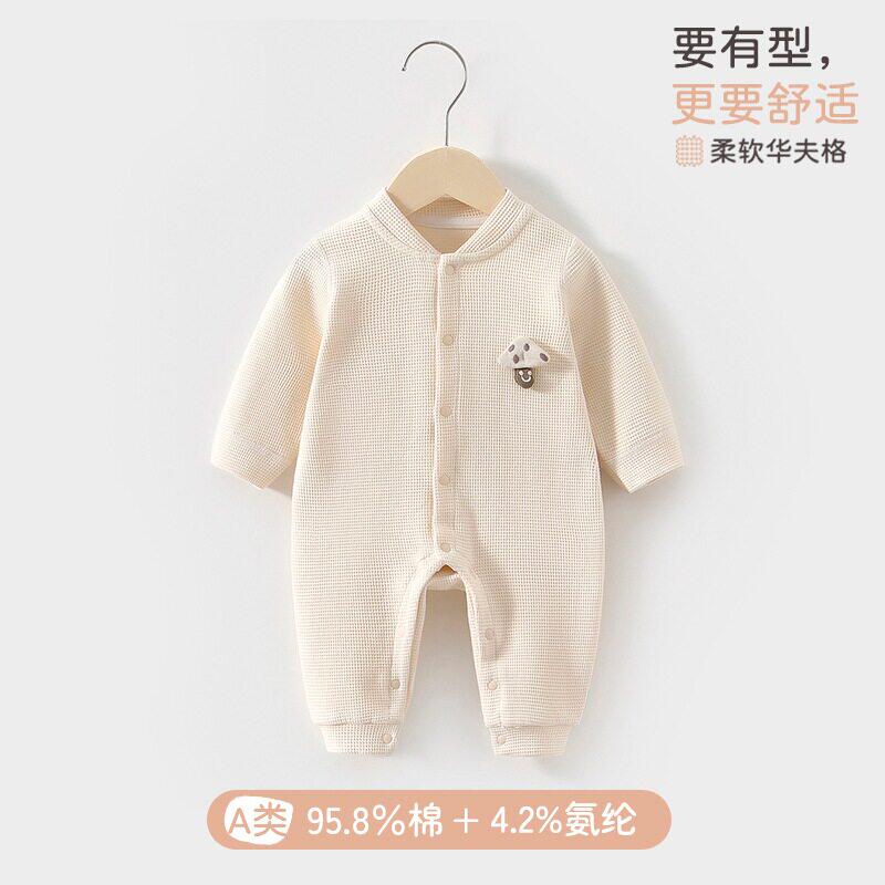 📚 婧麒新生婴儿衣服春秋季a类对开哈衣初生宝宝婴幼儿华夫格连体衣