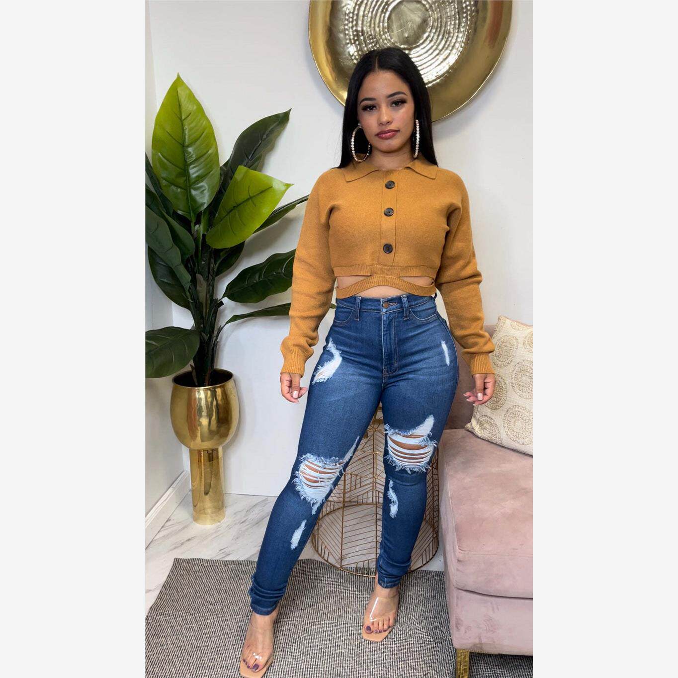 📚 fashion elastic ripped jeans women ladies pants trousers女裤