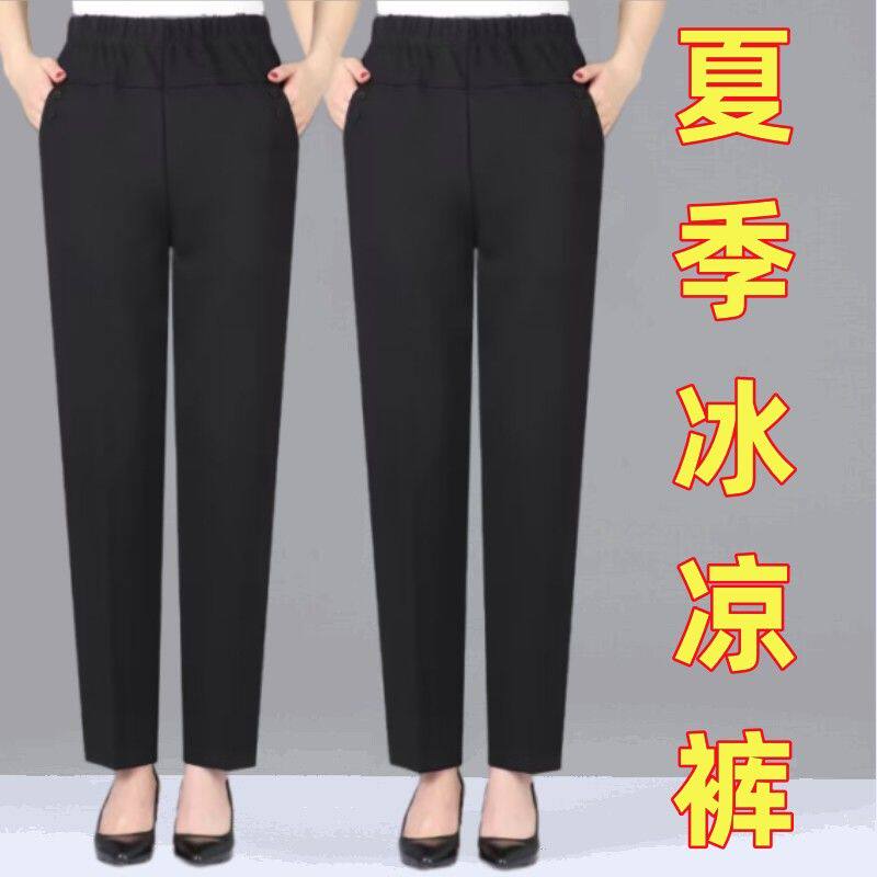 📚 夏季薄款裤子女高腰宽松休闲裤弹力中老年直筒女裤黑色显瘦妈妈裤