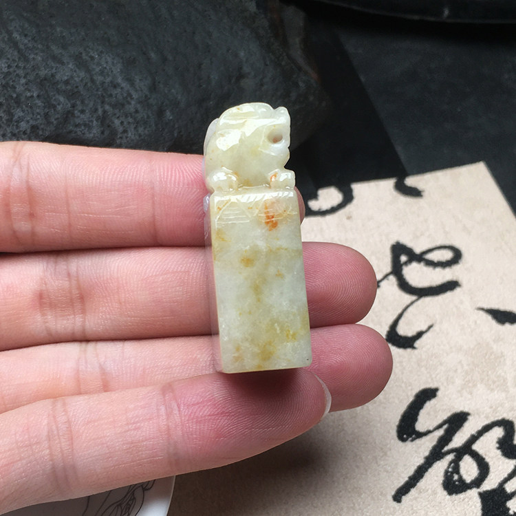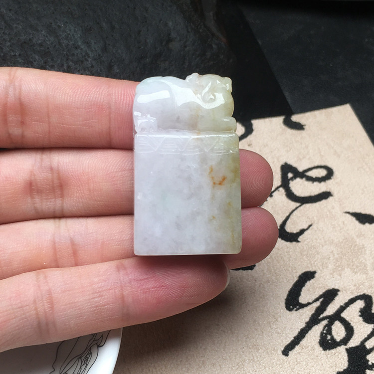 📚 隆慈缘翡翠貔貅印章缅甸保真老坑A货冰糯种皮丘黄翡玉章送证包邮