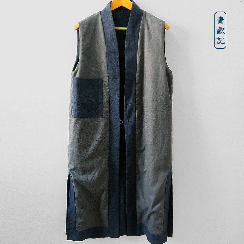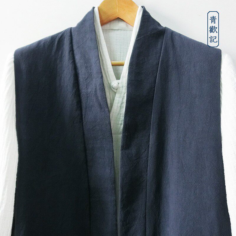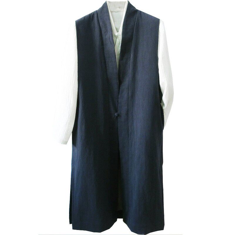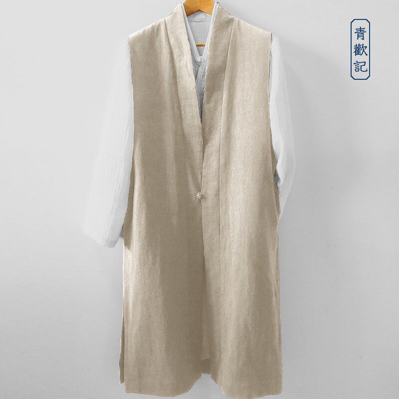 📚 原创中国风亚麻背心男士大码春秋中长款文艺汉服马甲宽松道服坎肩