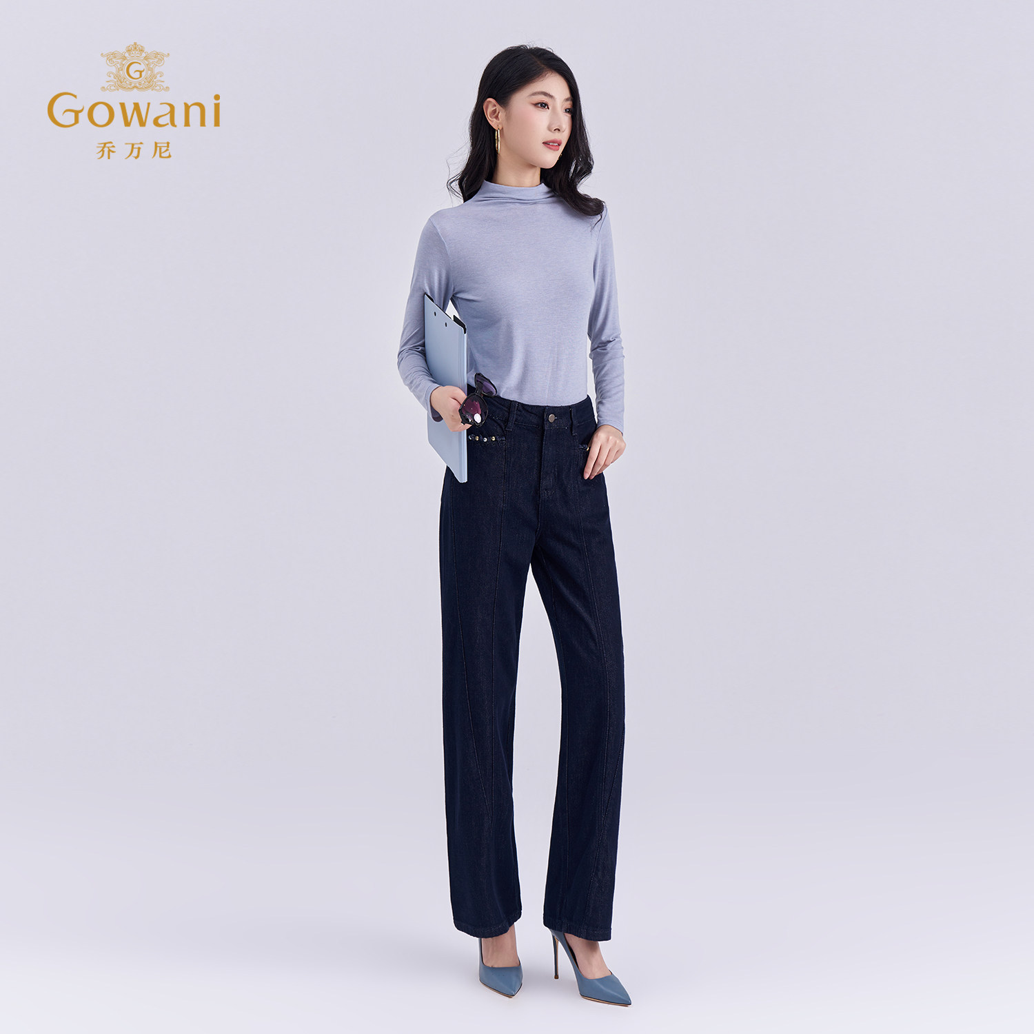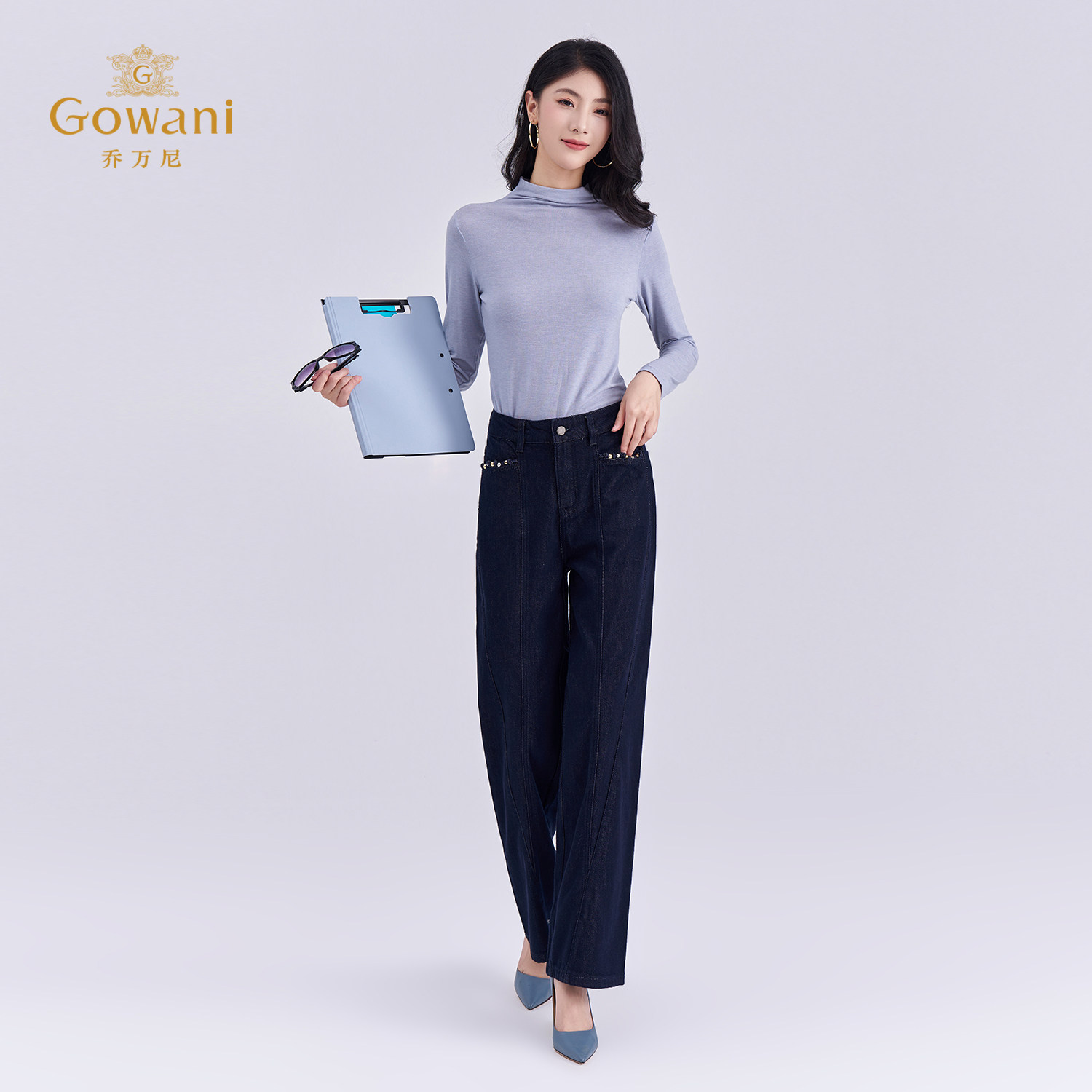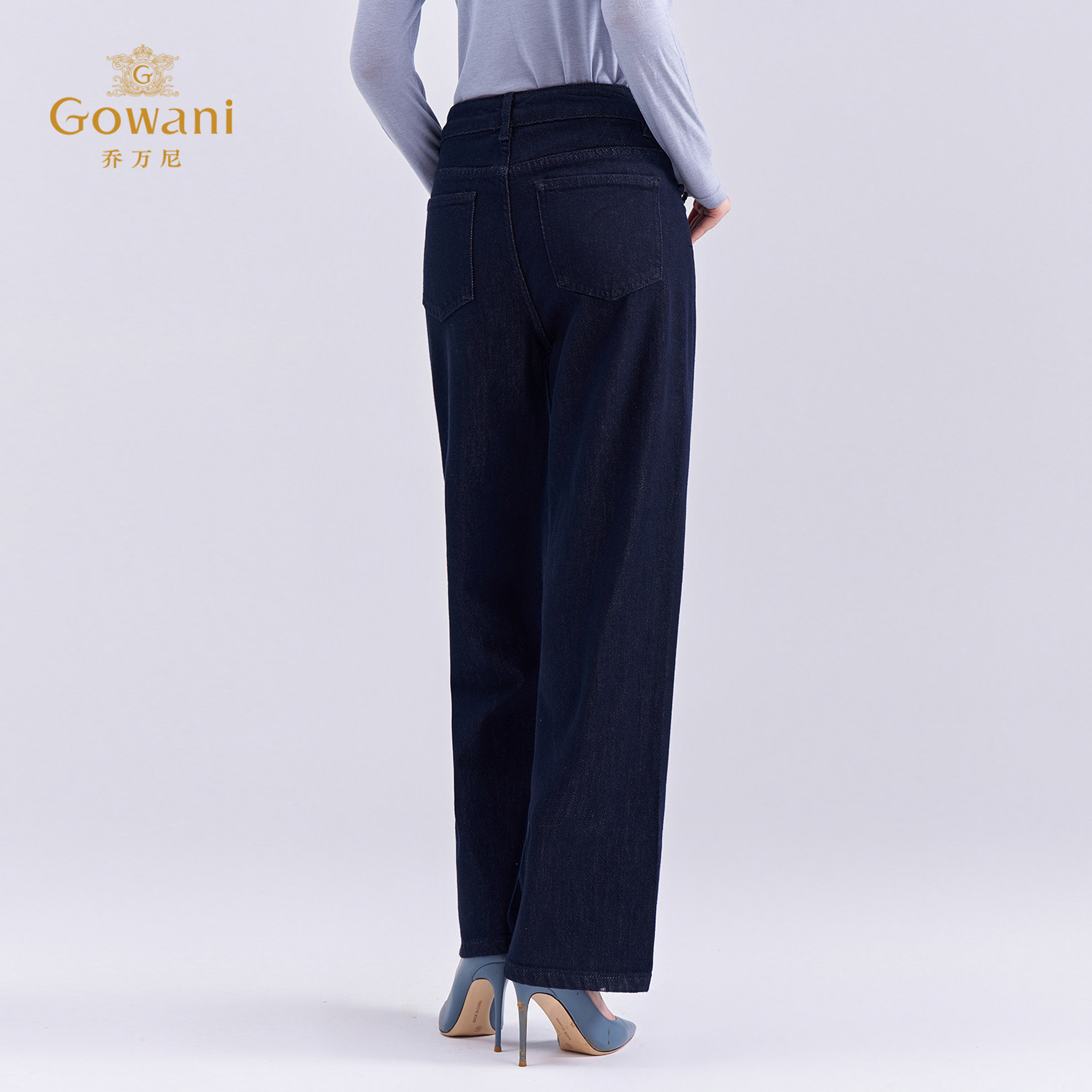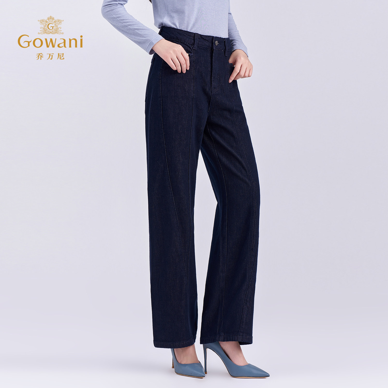 📚 乔万尼极简风高腰阔腿牛仔裤女深蓝色宽松显瘦直筒休闲裤EZ3F170