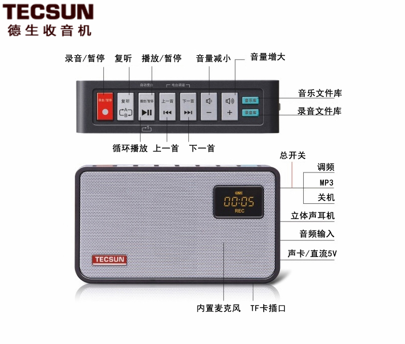 📚 Tecsun/德生 ICR-100插卡收录音机 广播半导体老人收音机 充电式