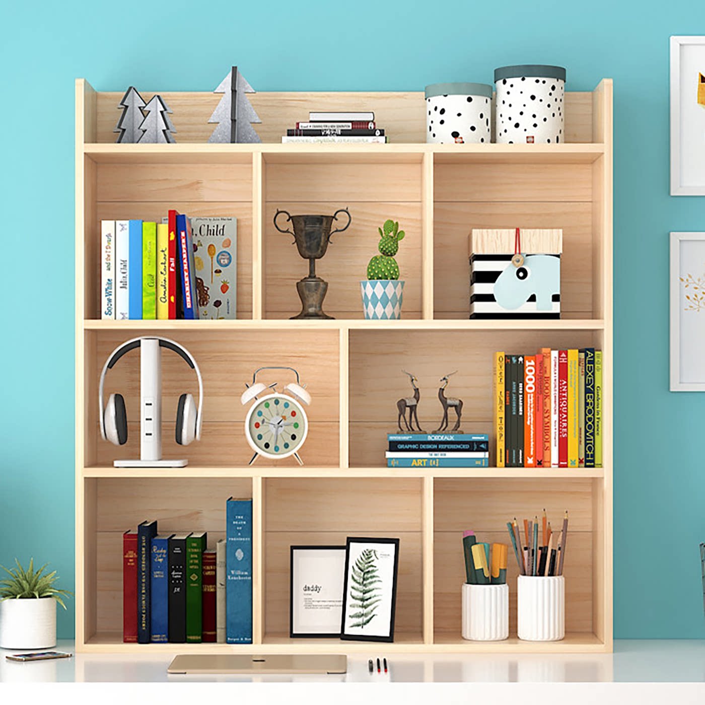 📚 简易实木桌上书架学生儿童松木小书架收纳架多层柜桌面飘窗置物架