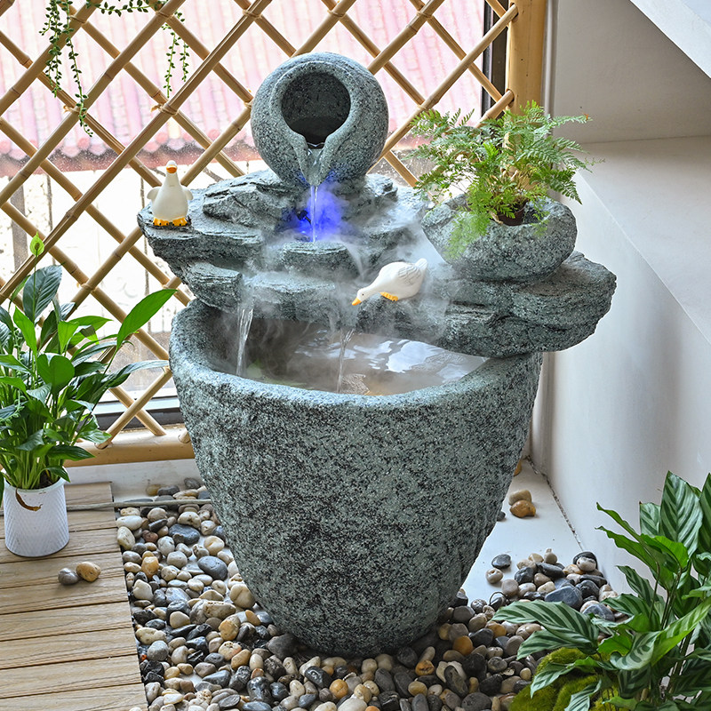 📚 古法鱼池户外庭院田园假山流水摆件循环水客厅阳台风水轮招财景观