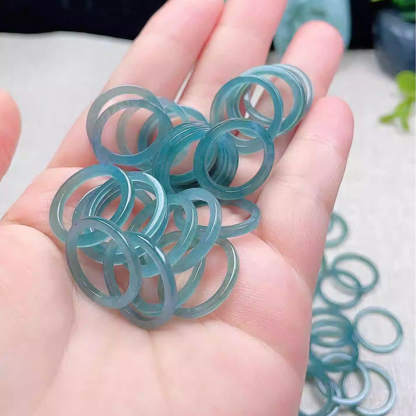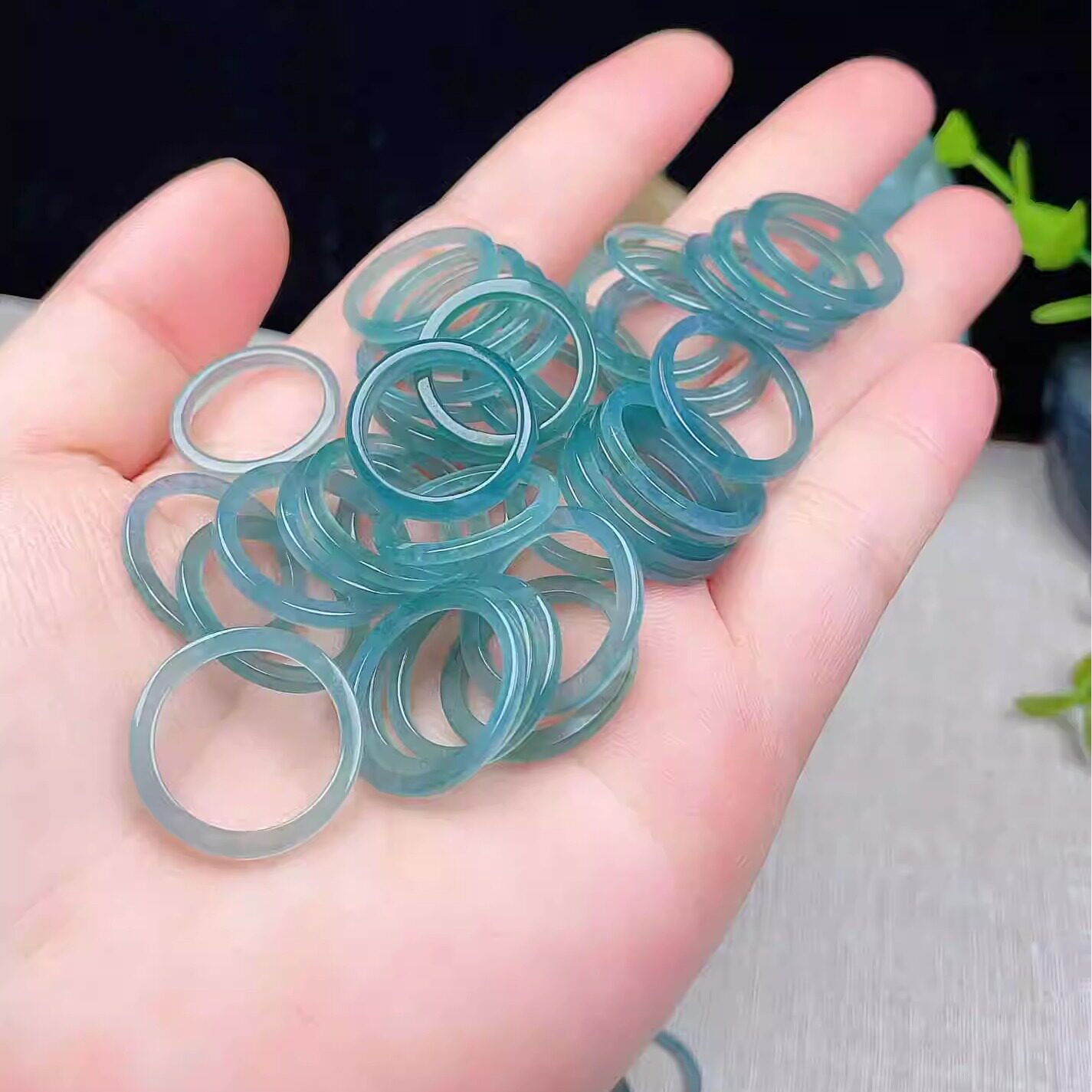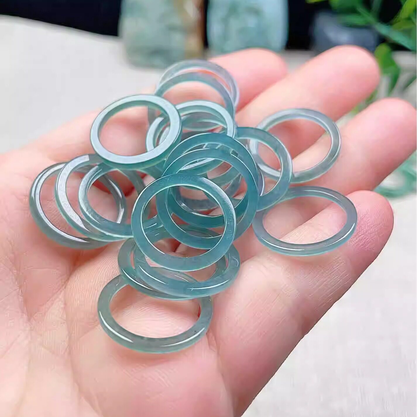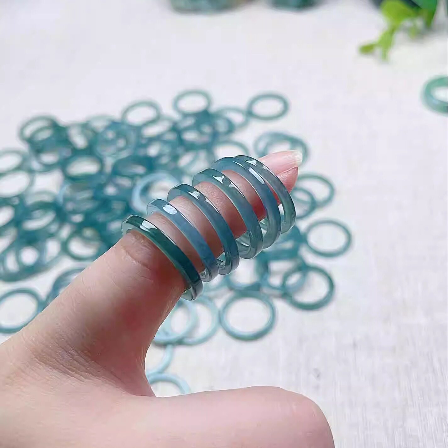 📚 天然翡翠A货方戒指晴水蓝飘花戒圈细边平口幸运圈秀气百搭