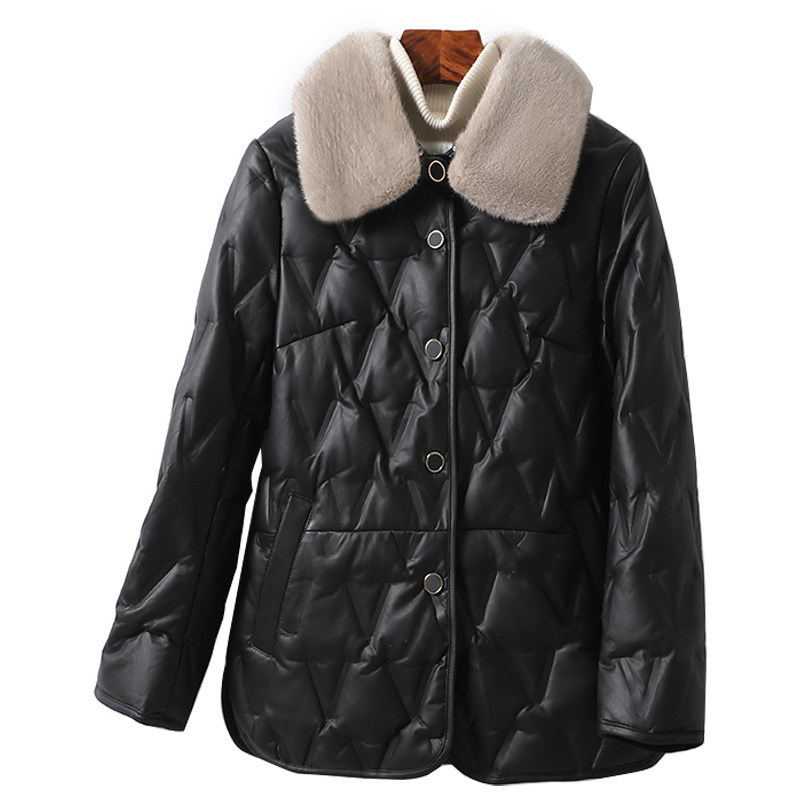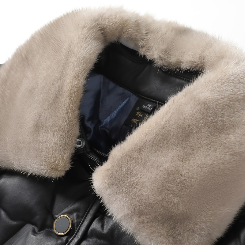📚 海宁皮衣女短款黑色水貂毛领加大绵羊皮羽绒小个子新款真皮外套