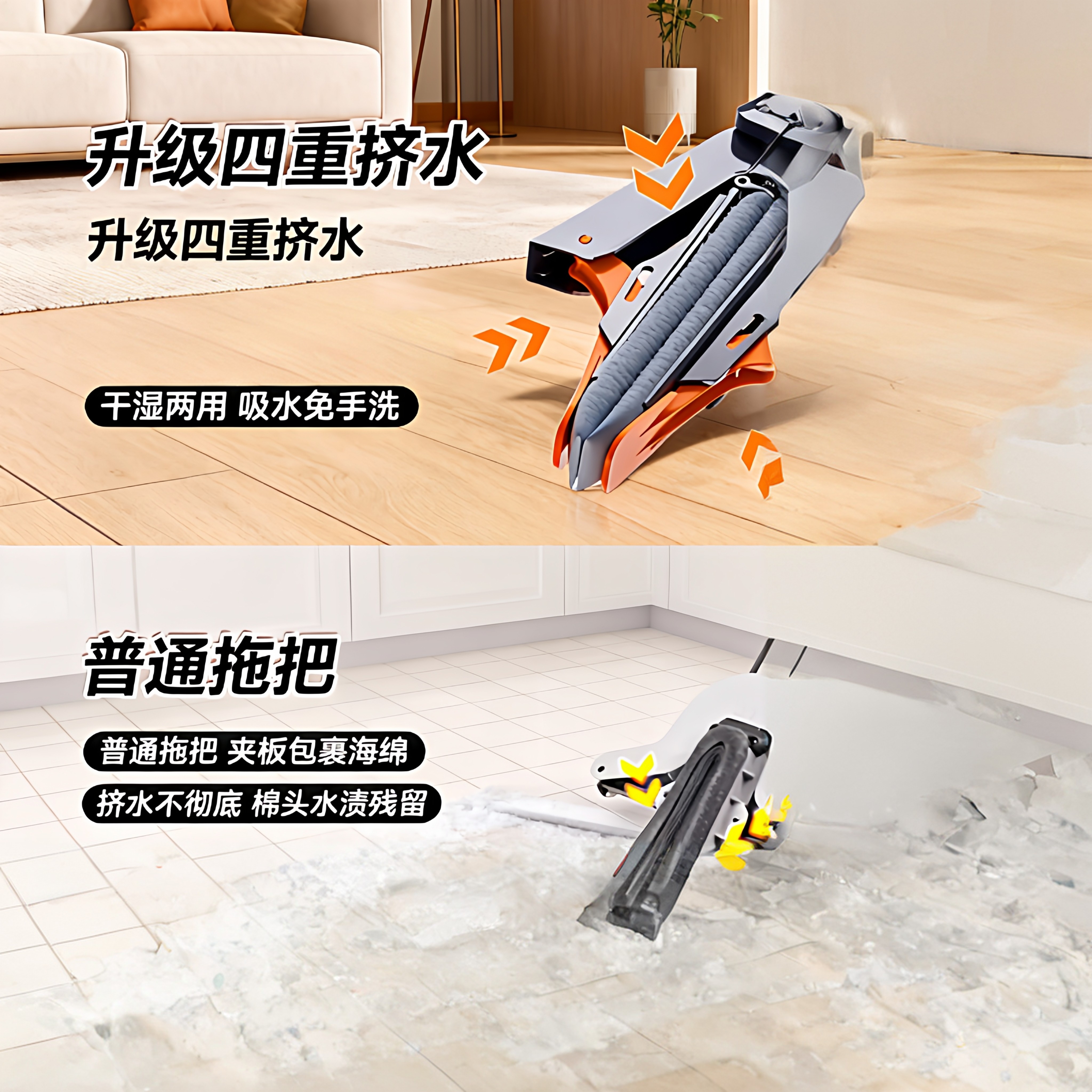 📚 海绵拖把2026新款免手洗家用一拖净干湿两用吸水免手洗胶棉头墩布