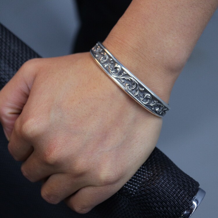 📚 铁头的店 legio made日本高肉设计 高浮雕唐草手镯 925银手环