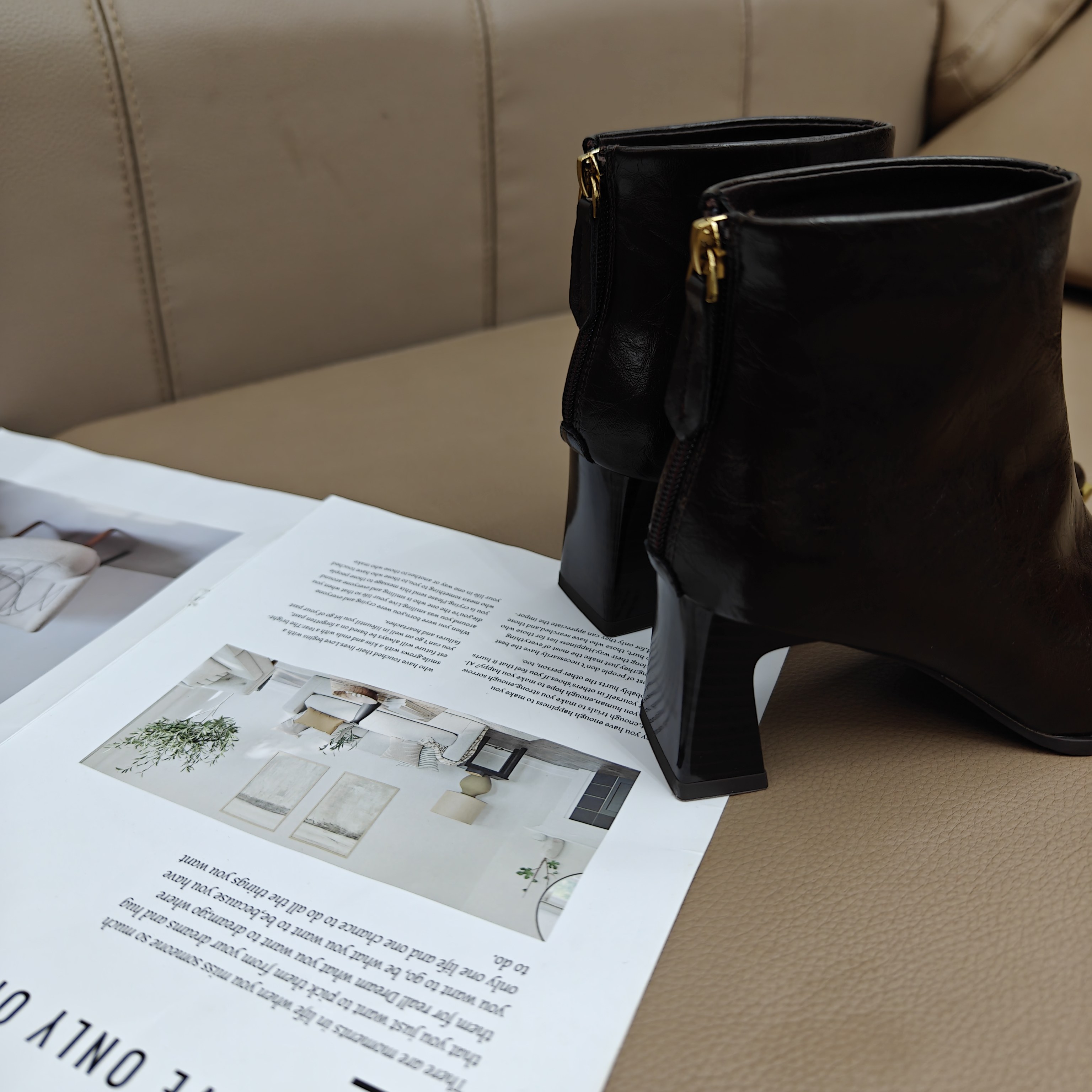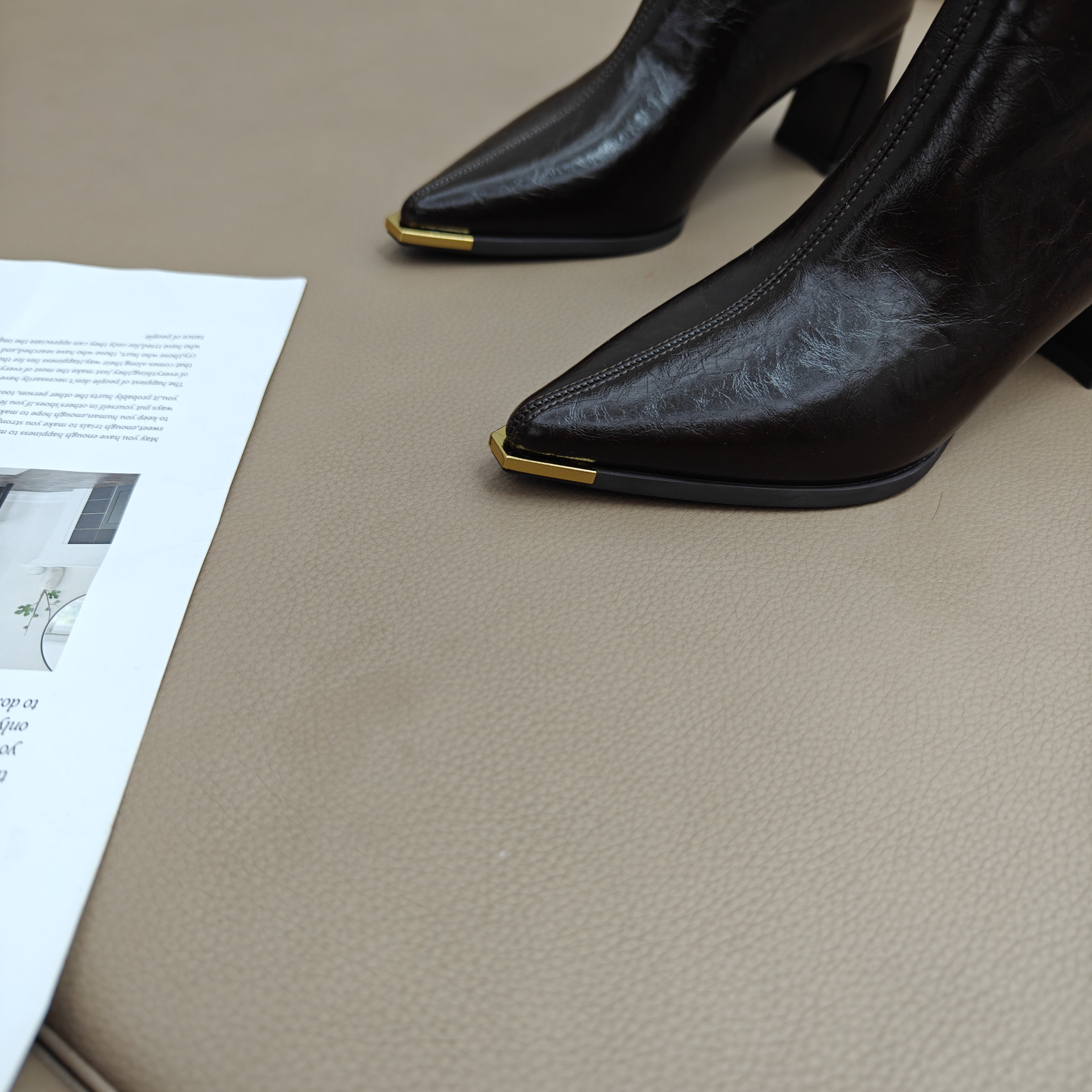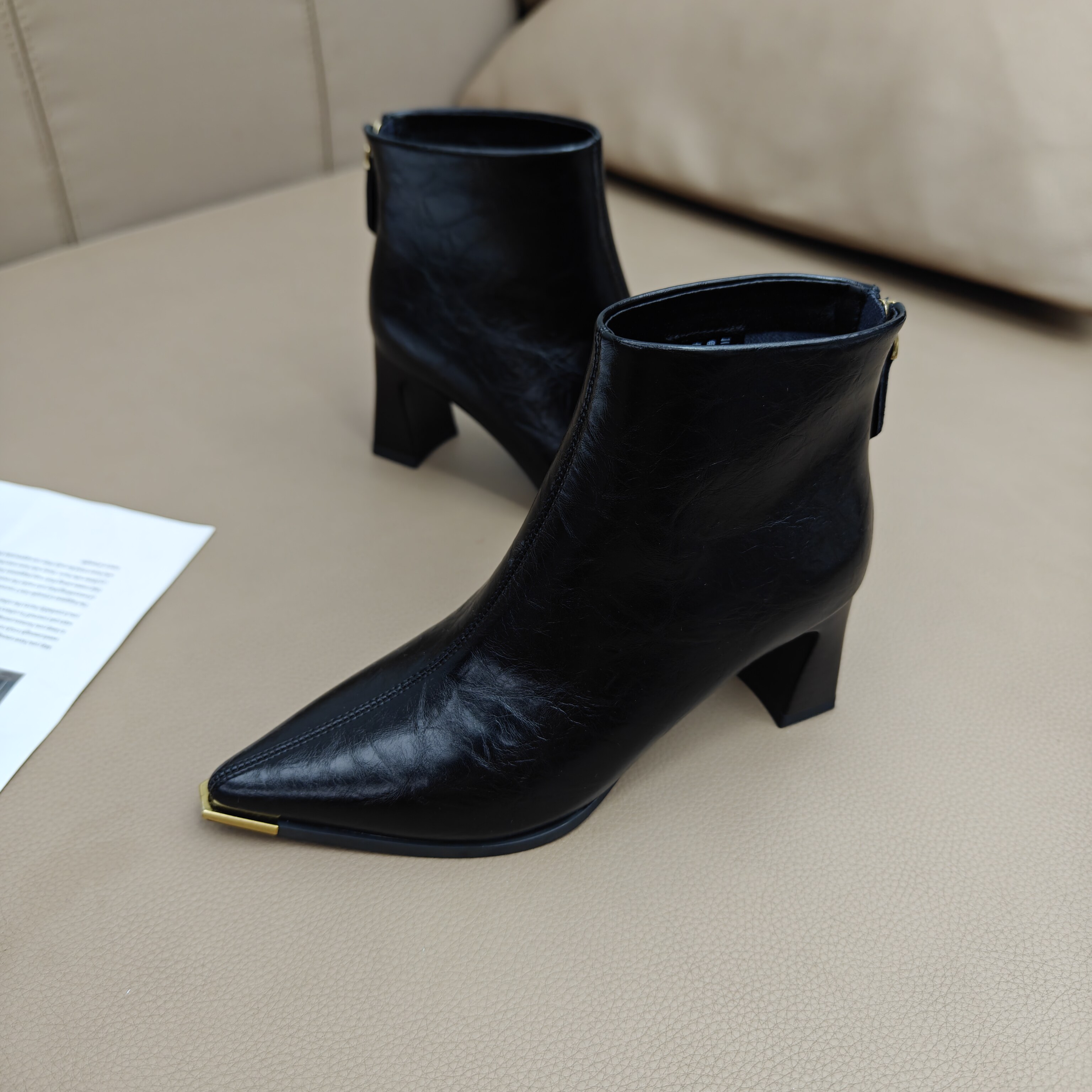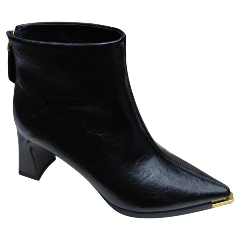 📚 欧美尖头粗跟软皮时装短靴女2025冬季新款高跟金属头瘦瘦靴小裸靴