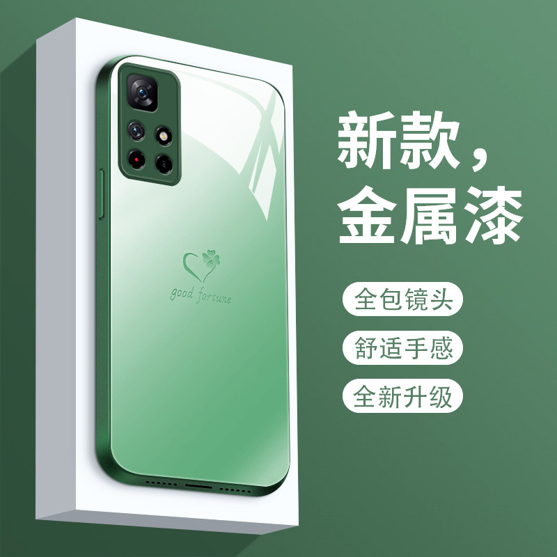 📚 适用红米note11手机壳液态玻璃硬壳Redminote11pro个性简约爱心四叶草11epro全包高级硅胶女款11Tpor潮牌创意