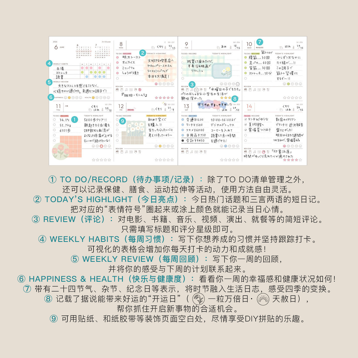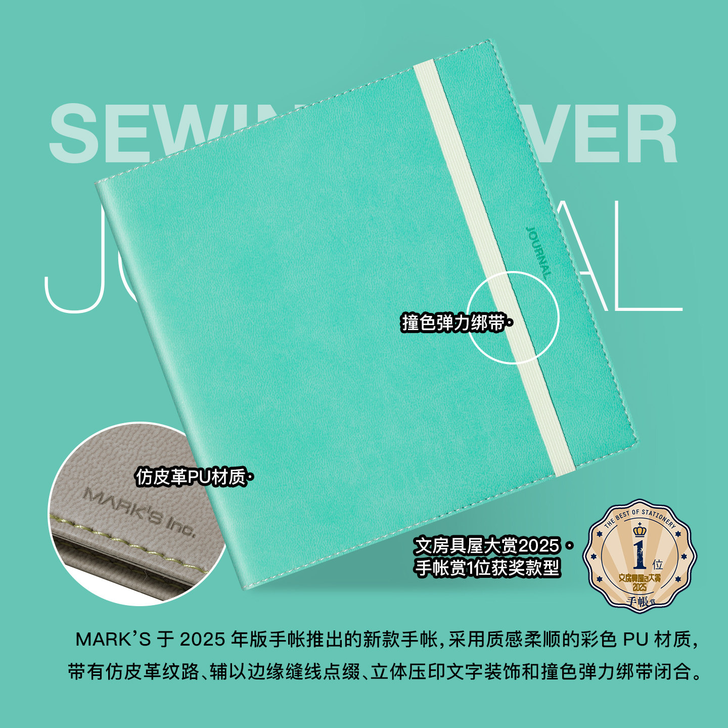 📚 【2026年】MARK'S缝制PU封皮矩阵格周计划手帐B6/方形日程管理笔记本记事本商务绑带自研手帐纸