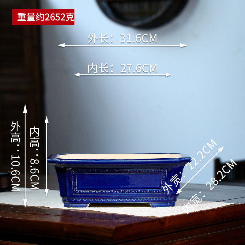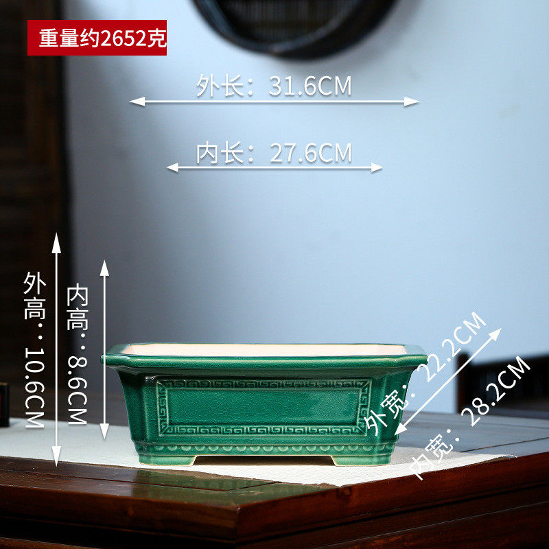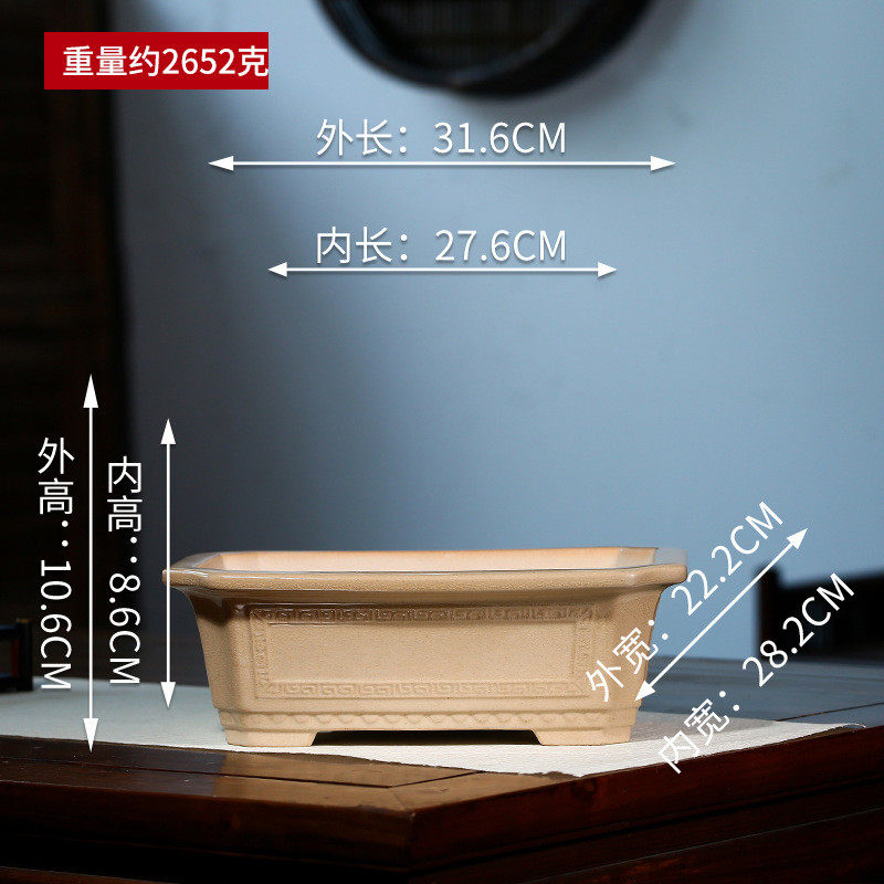 📚 批发紫砂花盆回纹长方高温釉大号马槽松竹假山绿植盆张治诚yd15
