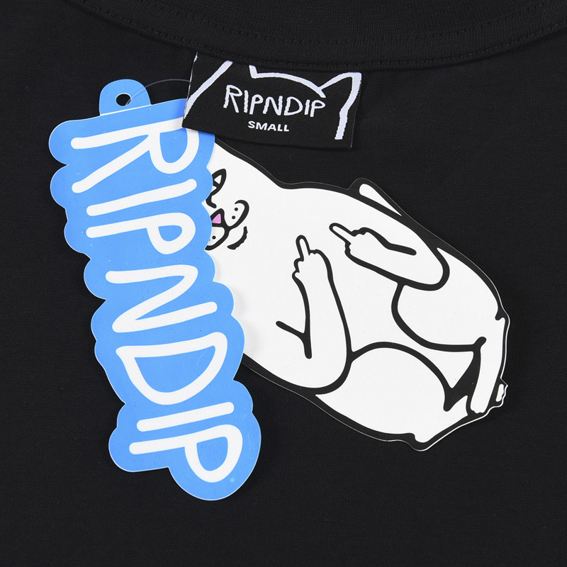 📚 美式高街潮牌RIPNDIP中指贱猫短袖T恤纯色真实生活LOGO男女情侣款