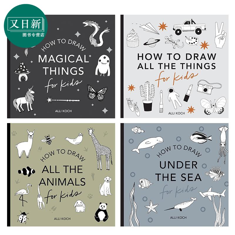 📚 Alli Koch How to Draw 英文原版儿童迷你绘画课4册 美育启蒙创意涂画 All The Things Animals Magical Things 又日新